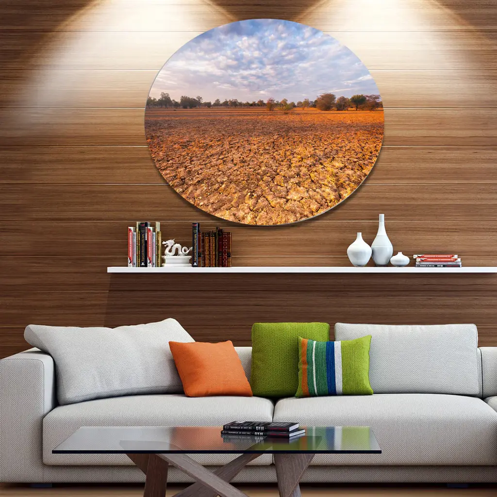 Bring Contemporary Abstraction to your home with this large Circle Metal wall art. This Amazing View of African Landscape Metal Artwork makes it the focal point of any room or office. - White Gloss Coating ensures colors are extra vibrant with light reflection.- Aluminum grade Sheet Metal with 1 inch mounting frame on the back giving the illusion that the artwork is floating on the wall..- Mounting Brackets are included along with instructions.- High Quality Digital images are created directly into a glossy aluminum panel producing a stunning and captivating print into the glossy finish of the metal.- Water, Fire and Scratch resistant HD Aluminum panels.- Looks better than any photo paper and guaranteed to last at least 20 years- Easy to clean with a microfiber cloth. Colors are far superior to regular Canvas Art. - Easy to Hang