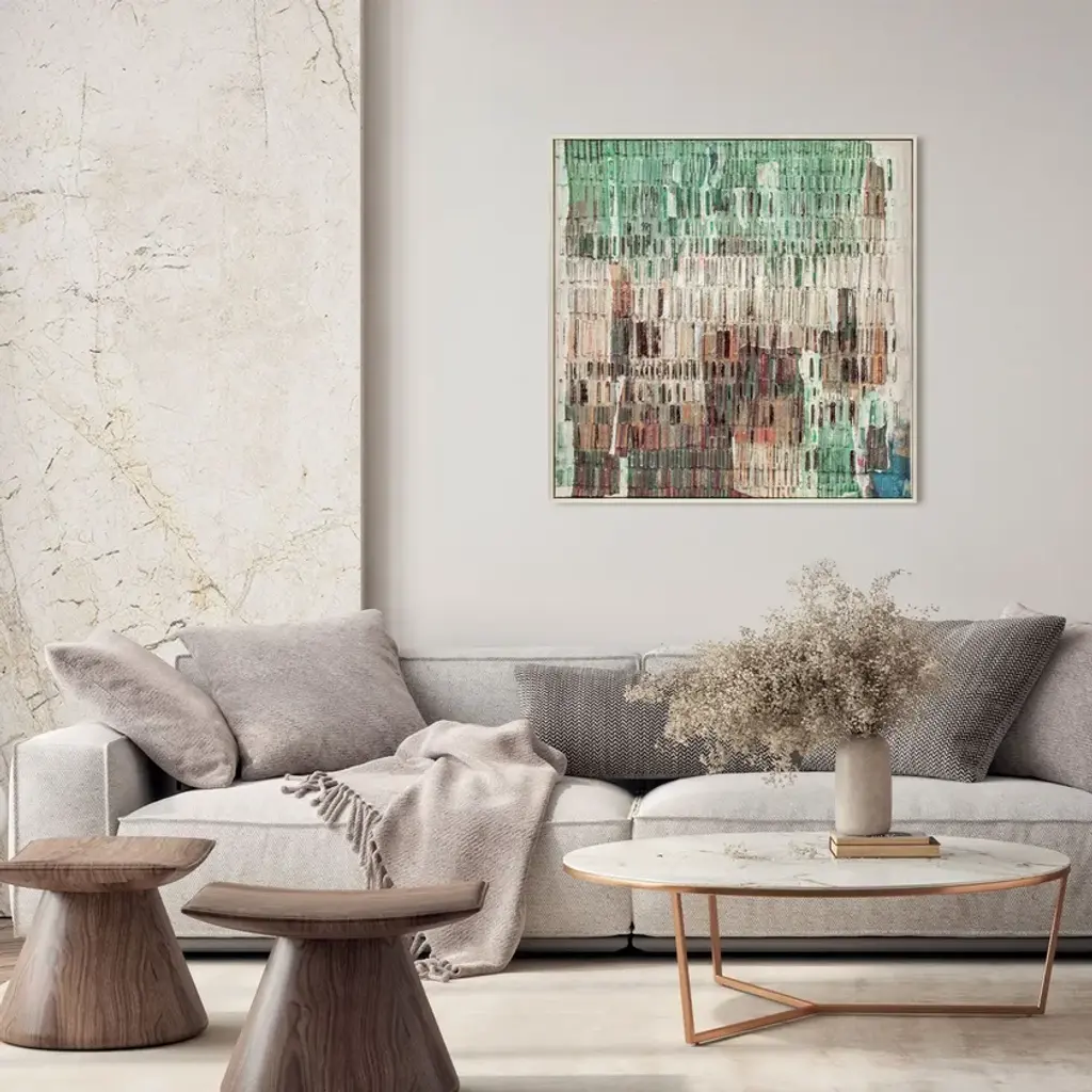 Amazzonia is an abstract painting printed with pressed paper on canvas. Shades of green and brown intertwine on a textured canvas. With a wooden inner frame and wooden frame, the painting is ready to hang.The AGAVE Quadri collection represents the excellence of contemporary art applied to the world of interior design. Each piece, hand-painted with artisanal techniques by the finest artists in collaboration with the Italian company AGAVE, combines abstract, natural, and figurative elements to create unique and refined works. These paintings transform spaces into environments of great elegance and character, perfect for interior design projects that require a distinctive and artistic touch.
