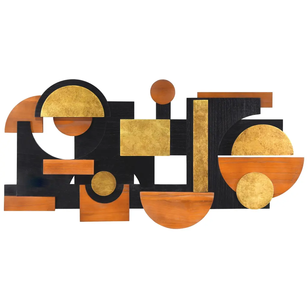This rectangular "Amber Embraces" wooden abstract wall sculpture is a masterpiece of passion and creativity expressed and laser engraved with the artist Jane Yu's signature. Each individual multiform piece of solid paulownia wood has been lovingly crafted and arranged to form a stunning work of art that exudes warmth and elegance. The rich, earthy tones of cinnamon, gold, and ebony mixed together dance across the wooden surface, creating a visual symphony that captures the eye and the heart. Please note that since these abstracts are made from real solid wood, the colors and patterns will be unique in each sculpture. Therefore, the image shown may be slightly different from the actual artwork. Pair it with Amber II to create a magical expression of warmth as part of your decor when hung either vertically or horizontally.