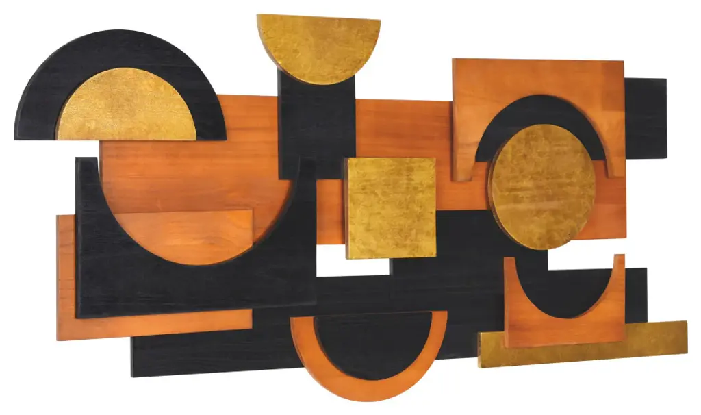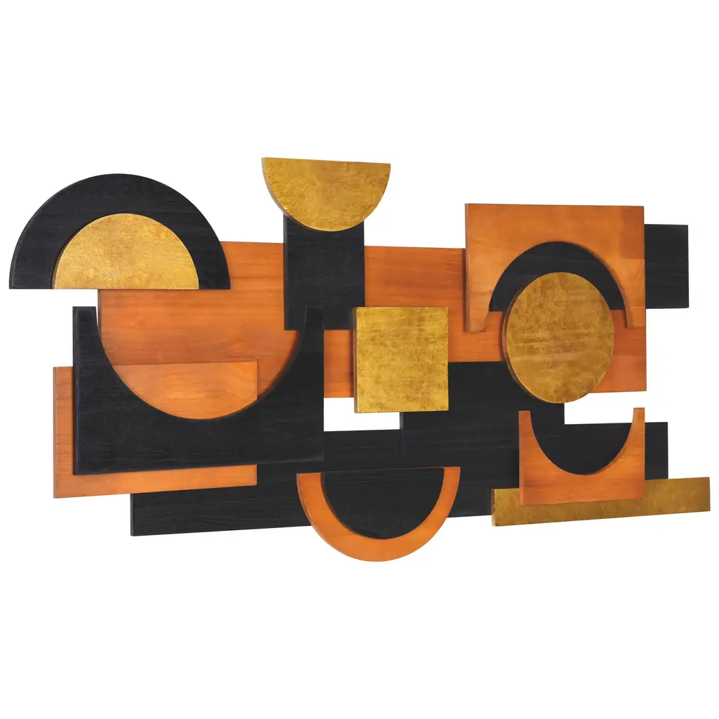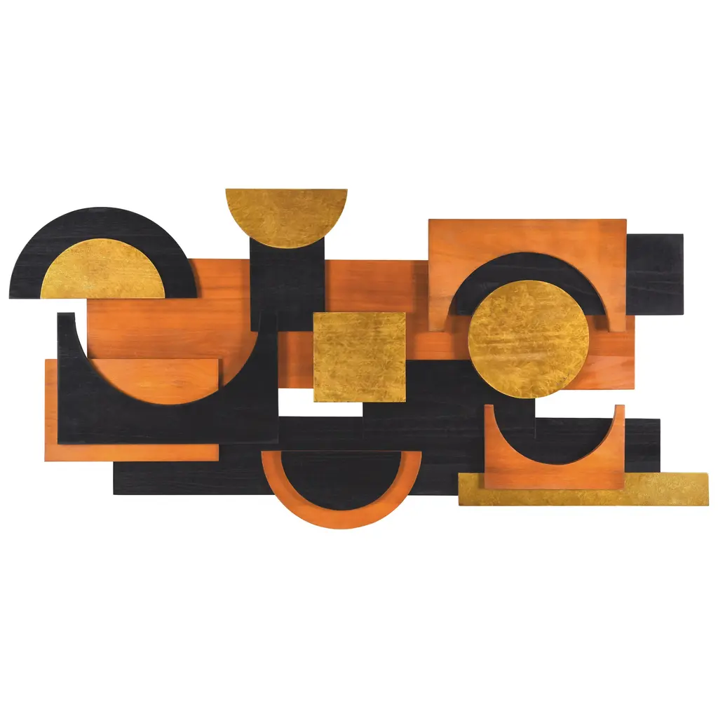This rectangular "Amber Embraces" wooden abstract wall sculpture is a masterpiece of passion and creativity expressed and laser engraved with the artist Jane Yu's signature. Each individual multiform piece of solid paulownia wood has been lovingly crafted and arranged to form a stunning work of art that exudes warmth and elegance. The rich, earthy tones of cinnamon, gold, and ebony mixed together dance across the wooden surface, creating a visual symphony that captures the eye and the heart. Please note that since these abstracts are made from real solid wood, the colors and patterns will be unique in each sculpture. Therefore, the image shown may be slightly different from the actual artwork. Pair it with Amber II to create a magical expression of warmth as part of your decor when hung either vertically or horizontally.