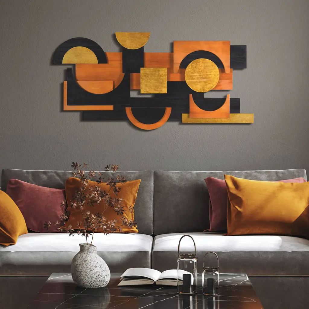 "Amber Embraces" Hand Made & Hand Finished Dimensional Solid Paulownia Wood Abstracts Wall Art - 48" X 24"x 1.42" B