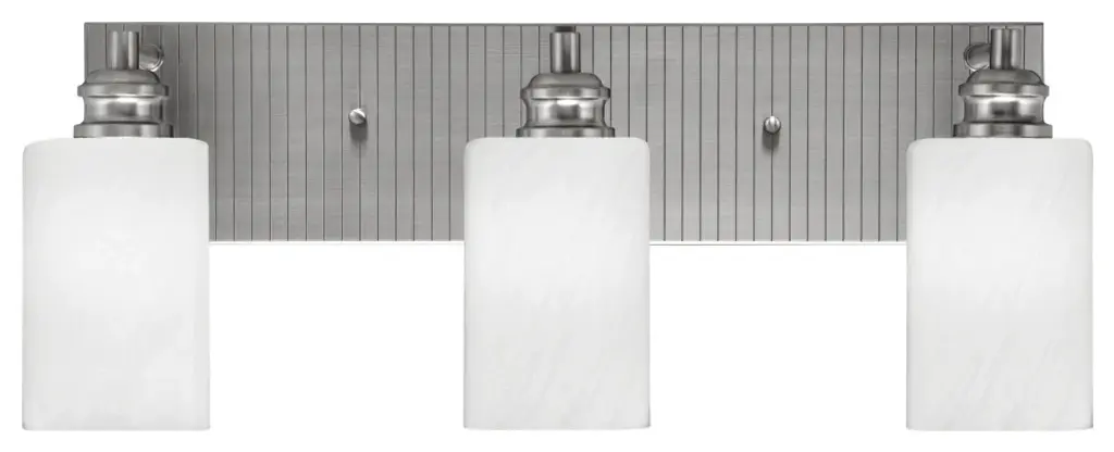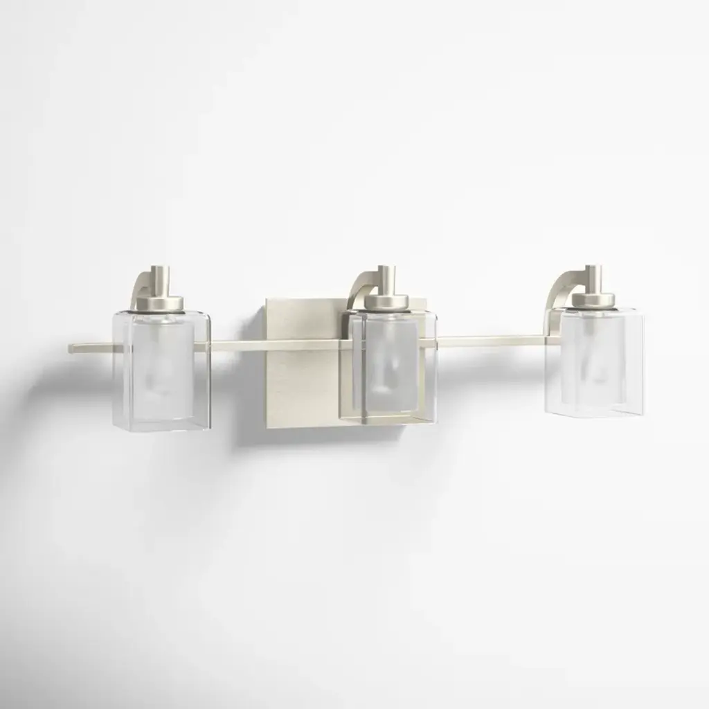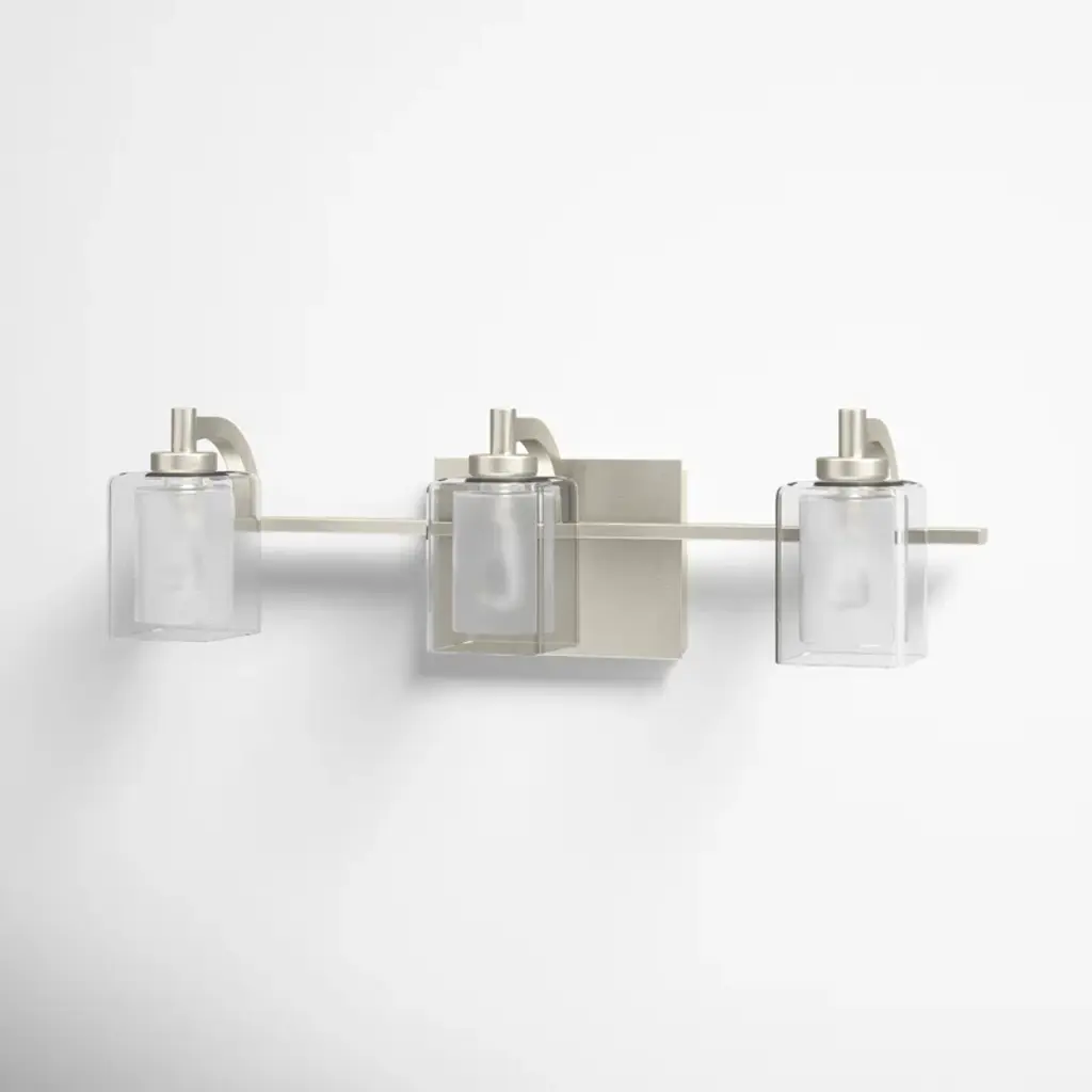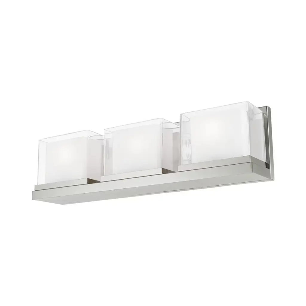 Illuminate your bathroom with this three-light vanity fixture, offering a versatile touch of style that complements any decor. Made from steel, it features a polished chrome finish and three rectangular shades for a sleek, modern look. The shades can be mounted facing up or down, giving you the flexibility to create your desired ambiance. This damp-rated fixture is compatible with 50-watt LED bulbs (included) and can be easily dimmed to set the perfect mood. Just wipe it clean with a dry cloth to keep it looking fresh and fabulous.