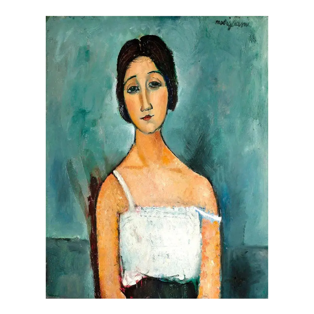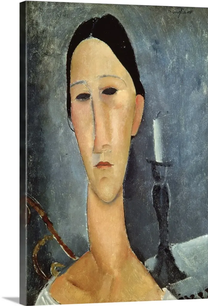 18" x 27" Amedeo Modigliani Pink Blouse gallery wrapped premium canvas print reproduced to meet museum quality standards. Our museum quality canvas prints are produced using high-precision print technology for a more accurate reproduction printed on high quality canvas with fade-resistant, archival inks. Our progressive business model allows us to offer works of art to you at the best wholesale pricing, significantly less than art gallery prices, affordable to all. This artwork is gallery wrapped by one of our expert framers, wrapped with 1.5" deep heavy duty wooden stretcher bars, to hang frameless for a high-end designer look. Our gallery wrapped canvas print comes with hardware, ready to hang on your wall. We present a comprehensive collection of exceptional canvas art reproductions by Amedeo Modigliani .