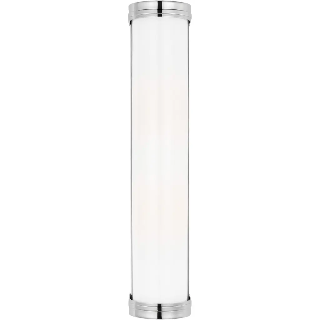 The Amelie LED Vanity Light from Visual Comfort Studio is designed by Chapman & Myers. Enrich your daily routine with this exquisite vanity light, crafted from durable steel. It features a cylindrical shade made of polycarbonate. The integrated LED provides efficient and brilliant illumination, facilitating your beautification process. Amelie showcases a contemporary design, combining aesthetics and functionality. The streamlined framework envelops the shade at the base and summit for a uniform presentation.