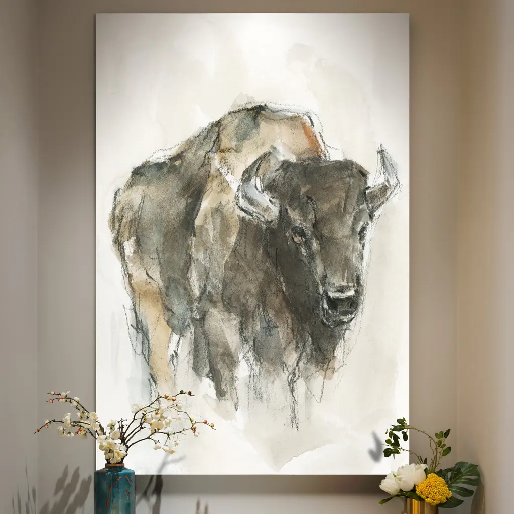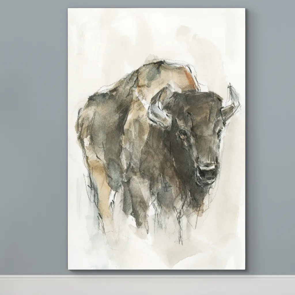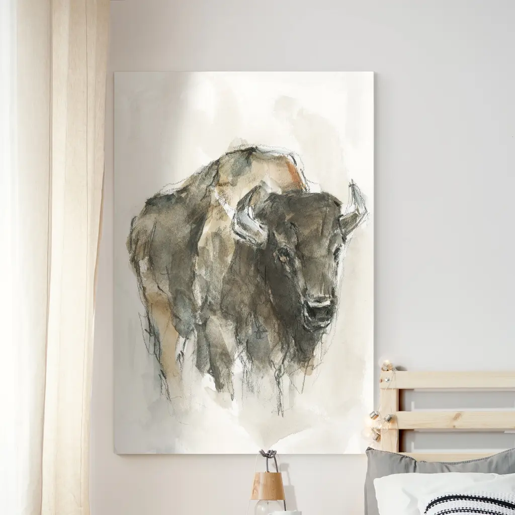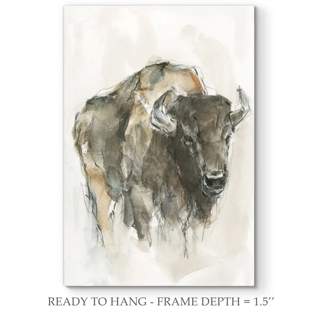American Buffalo I -Premium Gallery Wrapped Canvas - Ready to Hang A premium hand stretched gallery wrapped canvas print created to last. Featuring a beveled a solid wood stretcher bar, each piece comes ready to hand 5 SIZES AVAILABLE 8''X12'' - Overall Size 16''x20'' - Overall Size 18''x27'' - Overall Size 24''x36'' - Overall Size 32''x48'' - Overall Size Each piece is made to order. Built to Last Each piece comes ready to hang Solid wood stretcher Fade and Water resistant Made domestically