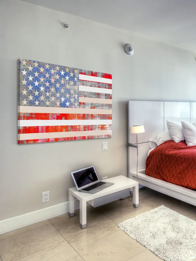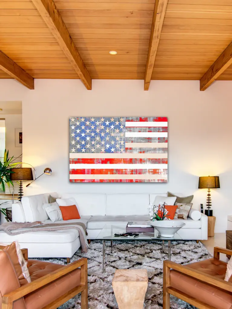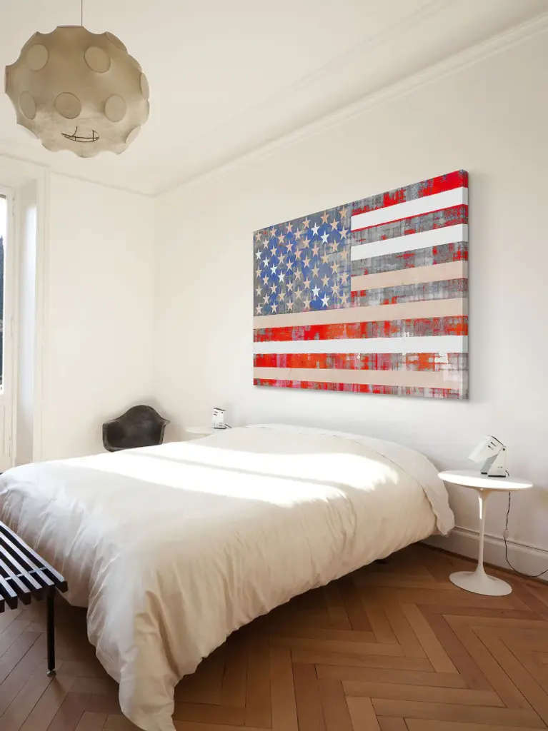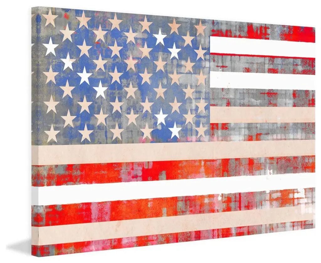 Striking and unique, the "American Dream" Fine Art Canvas Print by Parvez Taj will bring your walls to life. Printed on canvas, this 18 inch wide by 12 inch tall contemporary artwork will make a statement in any living room, dining room, or bedroom.- Fine art canvas print by Parvez Taj- Professionally hand stretched- Gallery wrapped in sustainable, non-warping wood- Arrives ready to hang- Made in the USA- Includes a certificate of authenticity- Artist signature on the front