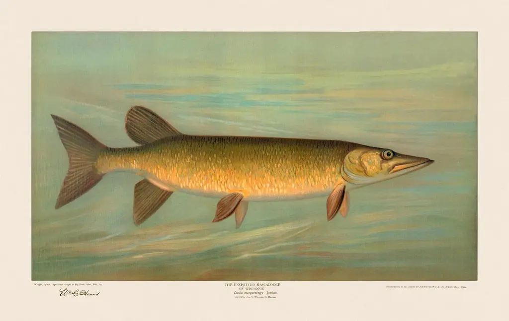 American Fish 33 The Unspotted Mascalonge By Harris Cfa Edition Giclee Print