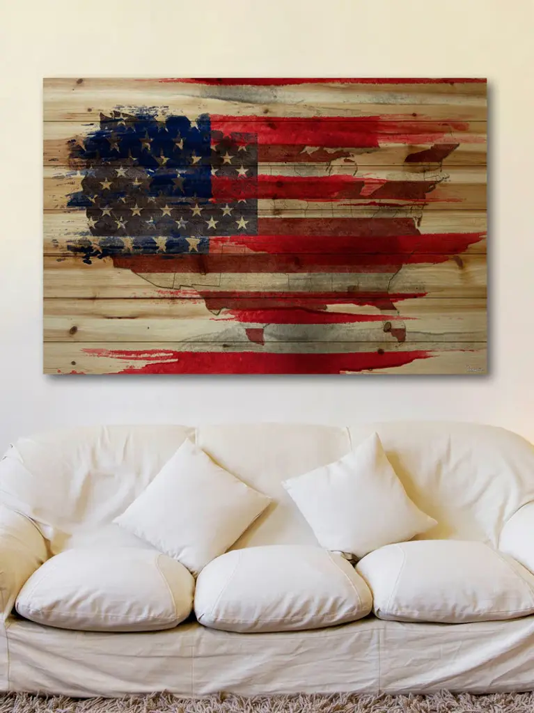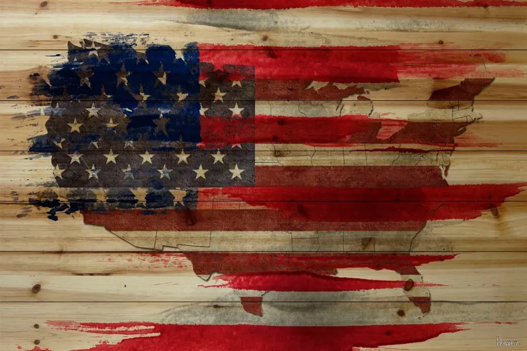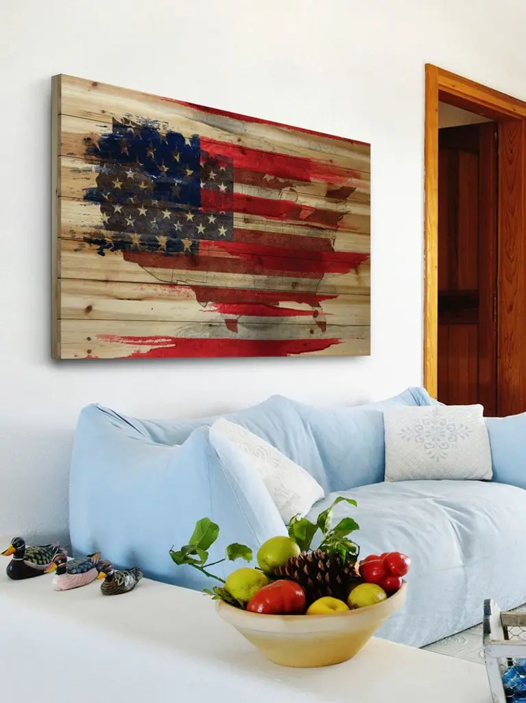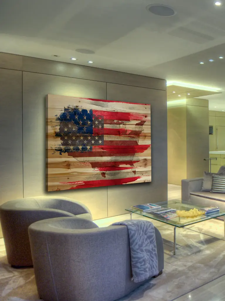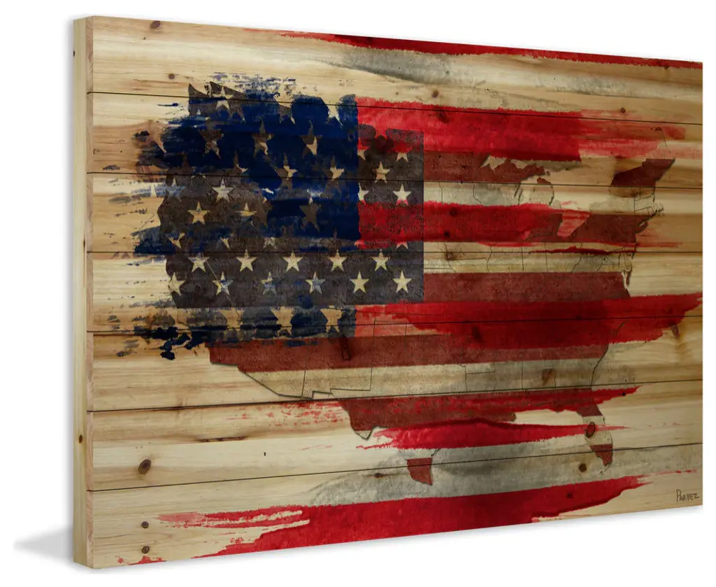"American Map" Painting Print On Natural Pine Wood, 24"x16"