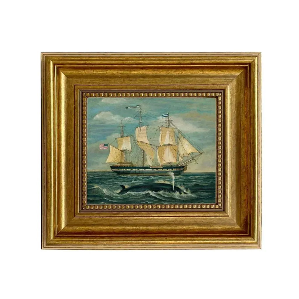 American Whaling Ship With Sperm Whale Print On Canvas, Gold Frame