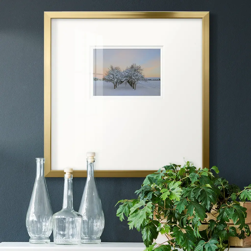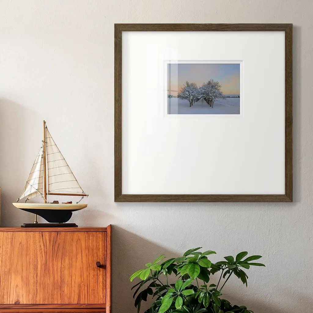 Among the Trees-Premium Framed Print A framed cold pressed paper print featuring superior double matting and quality frame. 2 SIZES AVAILABLE 16''X16''' - Overall Size 20''X20''' - Overall Size Each piece is made to order. Each piece comes with hanging hardware. Made in the USA Ready to Hang Giclee Paper Print Plexiglass Beveled Matt Board Double Matte Board
