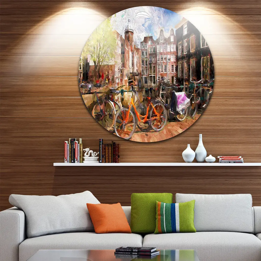 Amsterdam City Artwork, Landscape Round Wall Art, 23"