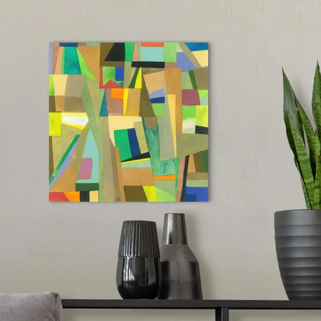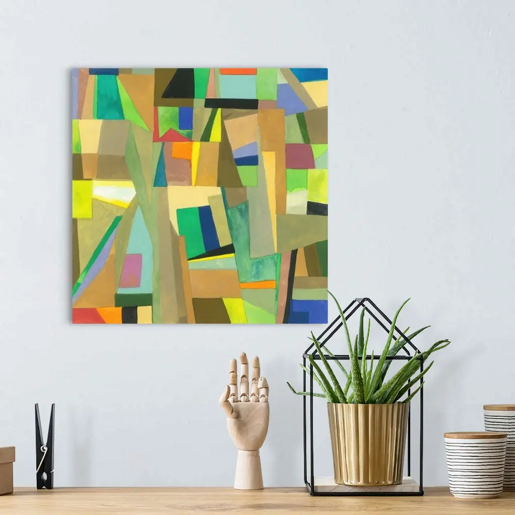 One painting in a series of geometric abstracts in various colors depicting the artist's interpretation of well-known cities.