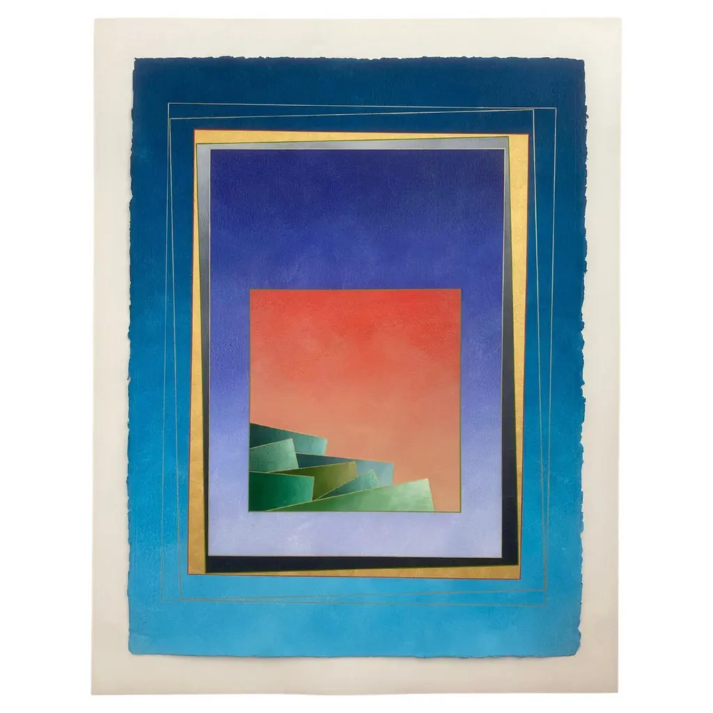 An Albers Sunrise by David Grey, Art Print in Blue Acrylic Frame, Medium Overall Size: 30x36 Frame Color: Blue Acrylic
