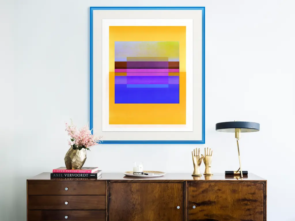 An Albers Sunrise By David Grey, Art Print In Blue Acrylic Frame, Medium