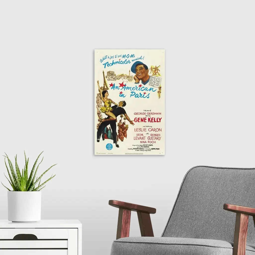 Lavish, imaginative musical features a sweeping score, and knockout choreography by Kelly. Ex-G.I. Kelly stays on in Paris after the war to study painting, supported in his efforts by rich American Foch, who hopes to acquire a little extra attention. But Kelly loves the lovely Caron, unfortunately engaged to an older gent. Highlight is an astonishing 17-minute ballet which holds the record for longest movie dance number--and one of the most expensive, pegged at over half a million for a month of filming. For his efforts, the dance king won a special Oscar citation. While it sure looks like Paris, most of it was filmed in MGM studios.