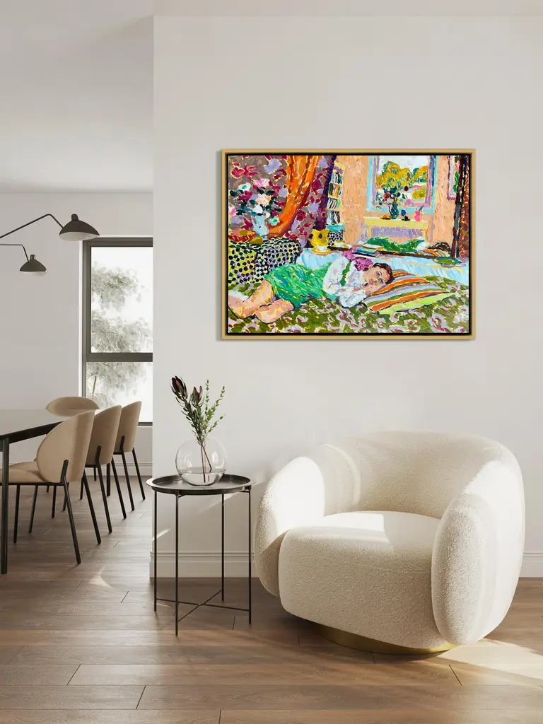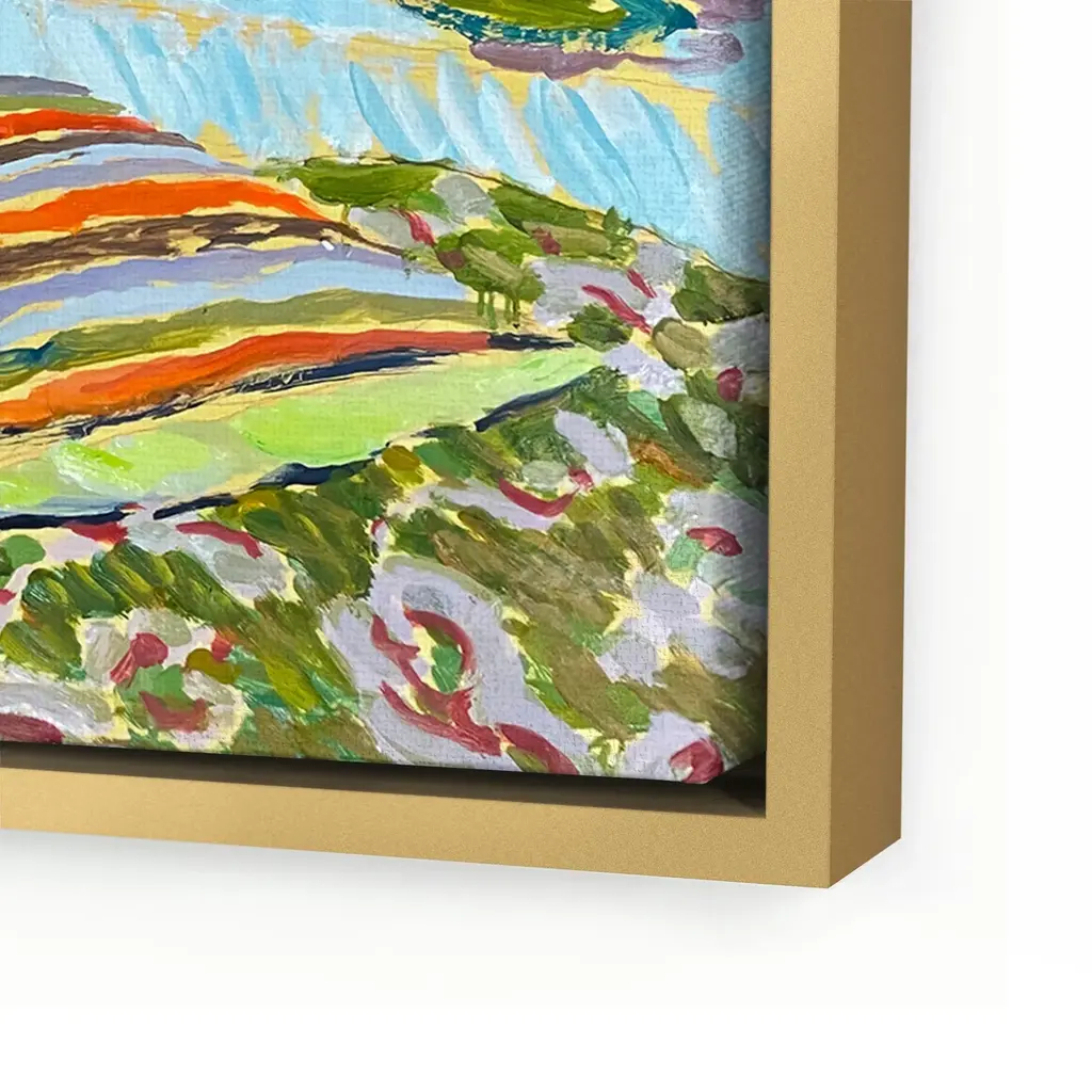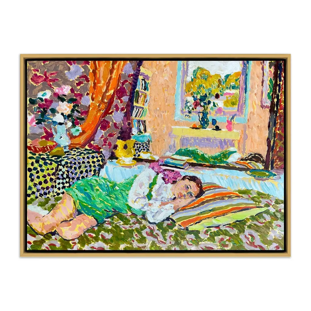 DESCRIPTION: An Autumn Afternoon by Hugo Grenville in Pale Gold Frame, Art Print on Canvas SPECIFICATIONS: Type: Giclée Art Print on Matte Canvas. Overall Size (in): 40x30. Image Size (in): 38.5x28.5. Orientation: Horizontal. Flush/Float/Matted: Float. Frame Color: Pale Gold. Hanging Hardware: Picture Perfect. FRAMING: Each art work arrives framed and ready to hang. We use handmade frames with a plexiglass glazing front, because it offers less glare than standard glass. At this time, we only offer framed prints. ARTIST BIO: Hugo Grenville is a renowned British Contemporary Painter whose work stands as a symbol of promise in a world where satire and cynicism predominate. Like the paintings made by Bonnard and Matisse during the Second World War, none of which allude to the grim reality of daily life, his work is grounded in the need to celebrate life, and to express our sense of existence through the recognition of the transforming power of color and light. Hugo has had numerous solo exhibitions worldwide, since his first in London in 1974. His work was recently included in a retrospective of Impressionist painting at the Nassau Museum of Art, exhibited alongside work by Cezanne, Renoir and Degas. Grenville currently resides in the English countryside, where he paints daily in his studio that was formerly a chapel schoolhouse built in 1794. His work is represented in corporate, institutional and private collections in UK, USA, Canada, France, Hong Kong and Australia.