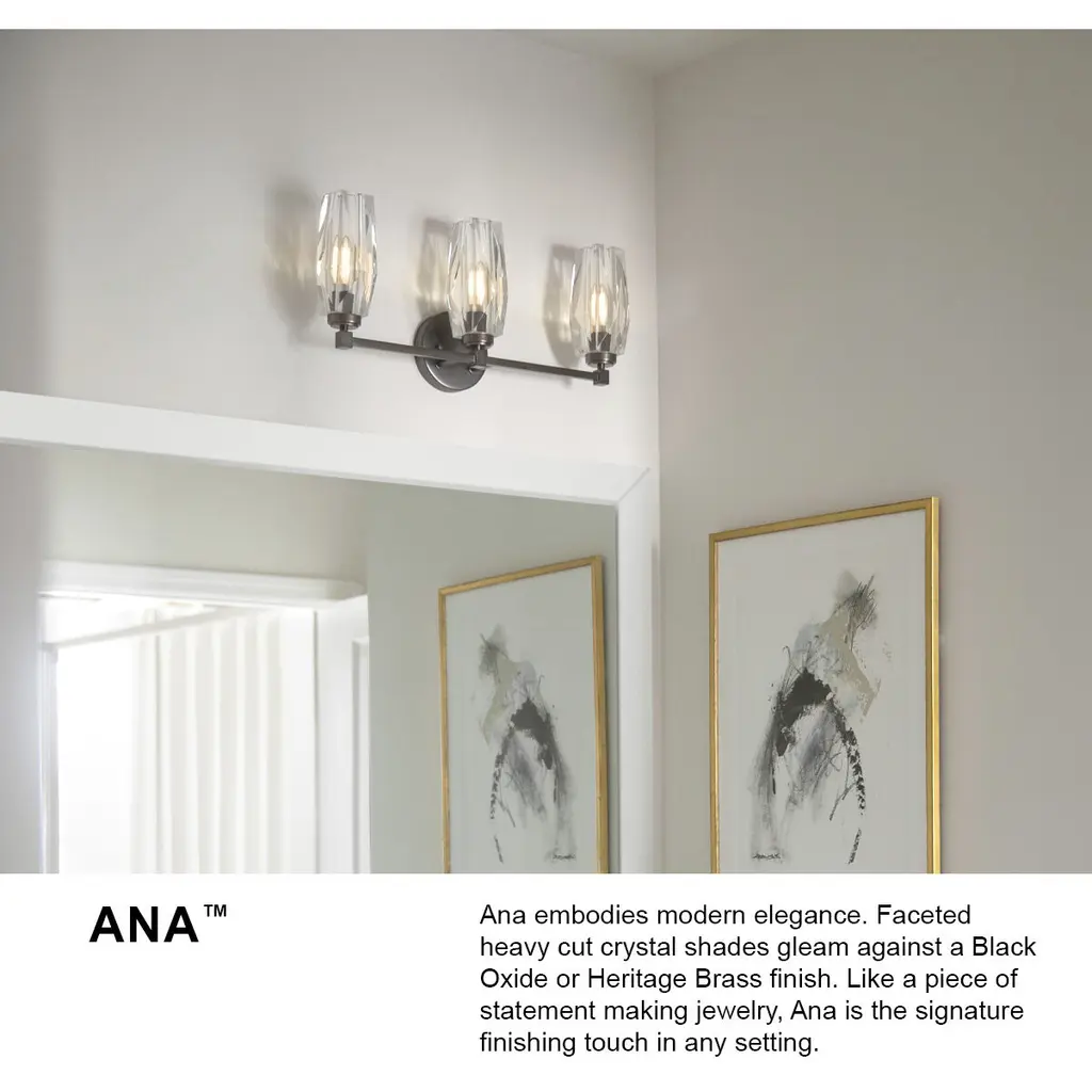 Ana embodies modern elegance. Faceted heavy cut crystal shades gleam against a Black Oxide or Heritage Brass finish. Like a piece of statement making jewelry, Ana is the signature finishing touch in any setting.