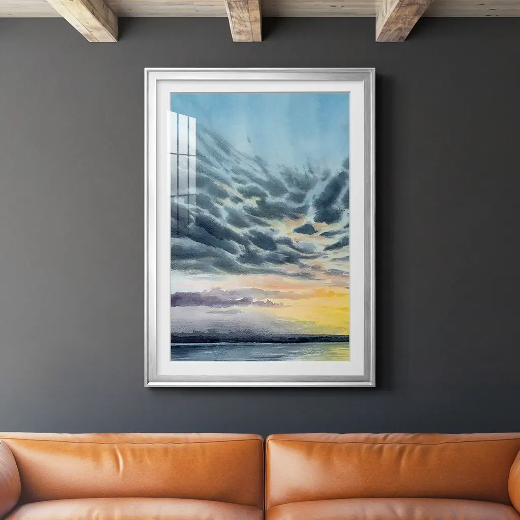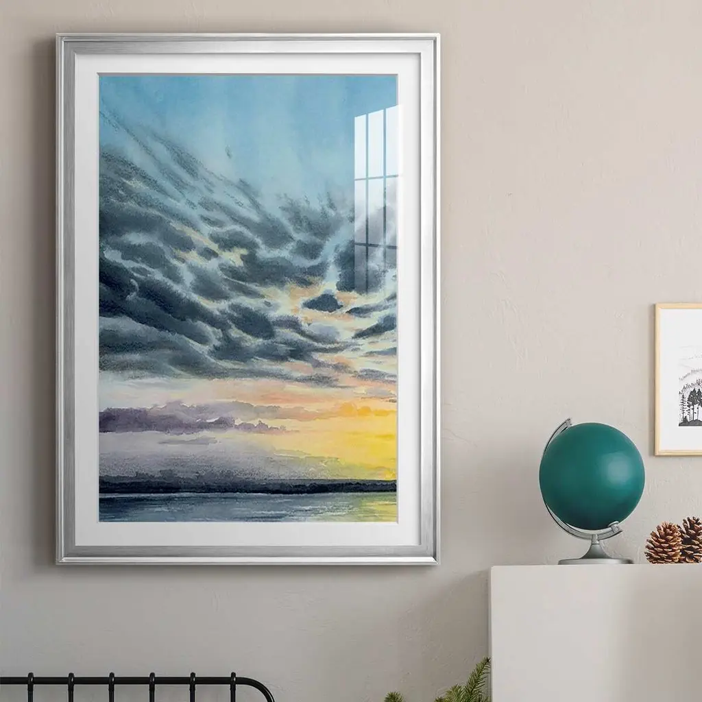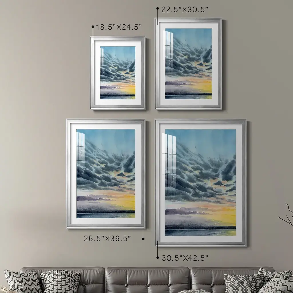 Anastasia Island Sunset I Premium Framed Print - Ready to Hang A Premium Framed Print created to last. Framed in distressed wood and available in an array of sizes and colors Featuring a beveled a solid wood stretcher bar, each piece comes ready to hand 4 SIZES AVAILABLE 30.5''X42.5'' - Overall Size 26.5'X36.5'' - Overall Size 22.5''x30.5'' - Overall Size 18.5''x24.5'' - Overall Size Each piece is made to order. Each piece comes with hanging hardware. Made in the USA Ready to Hang Giclee Paper Print Acrylic Glass Beveled Matt Board