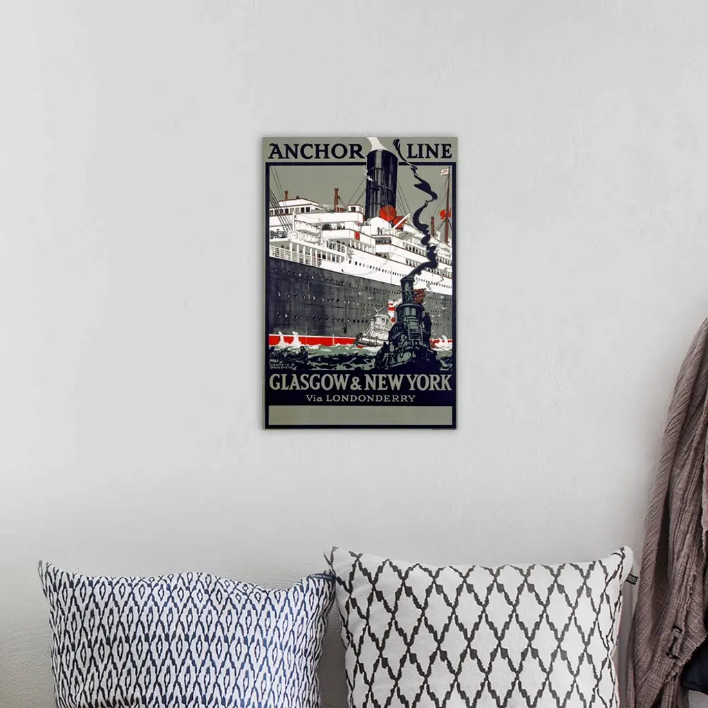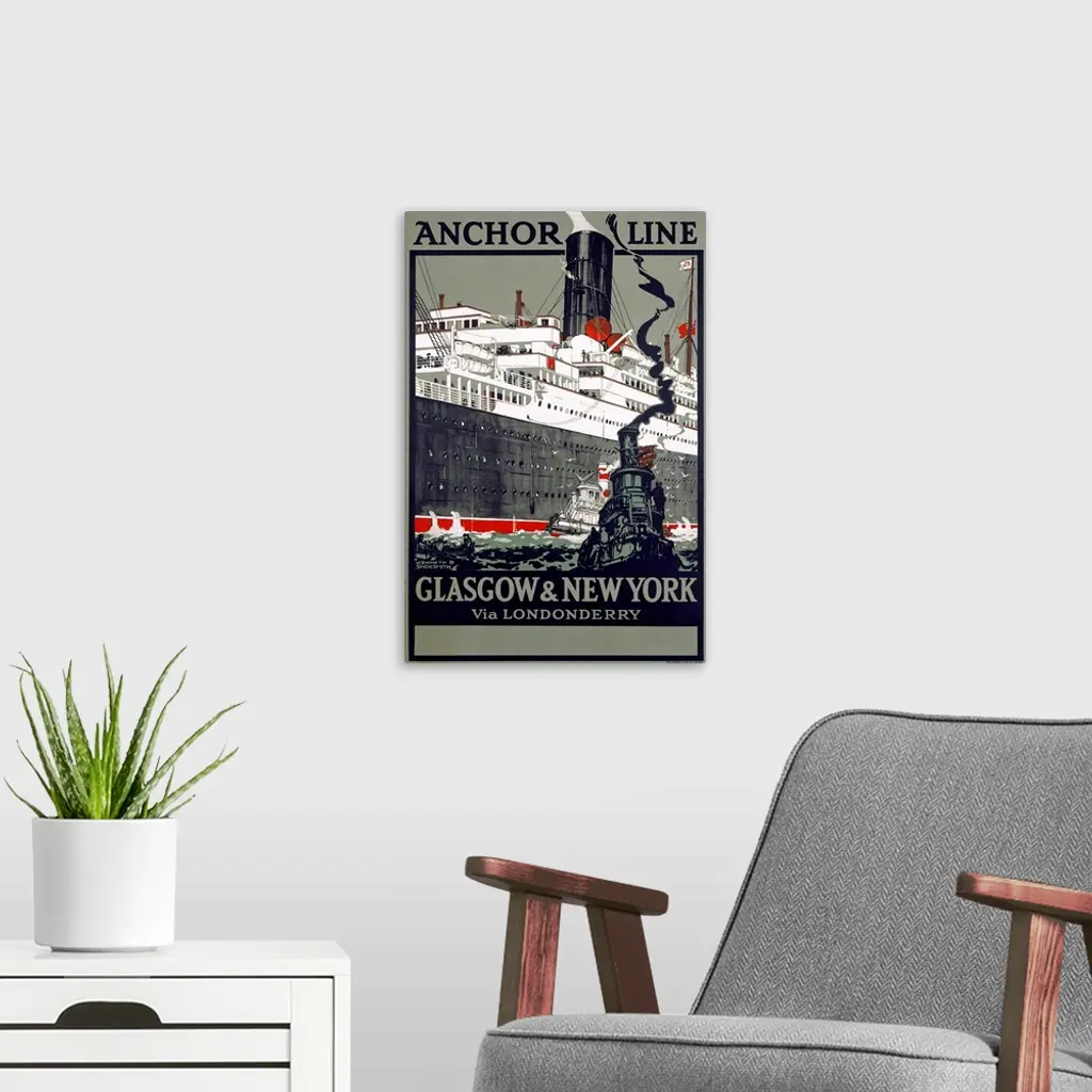 Anchor Line, Glasgow to New York, Vintage Poster, by Kenneth Shoesmith wall art for home and office decor. Discover canvas art prints, photos, mural, big canvas art and framed wall art in GreatBigCanvas.com's varied collections.
