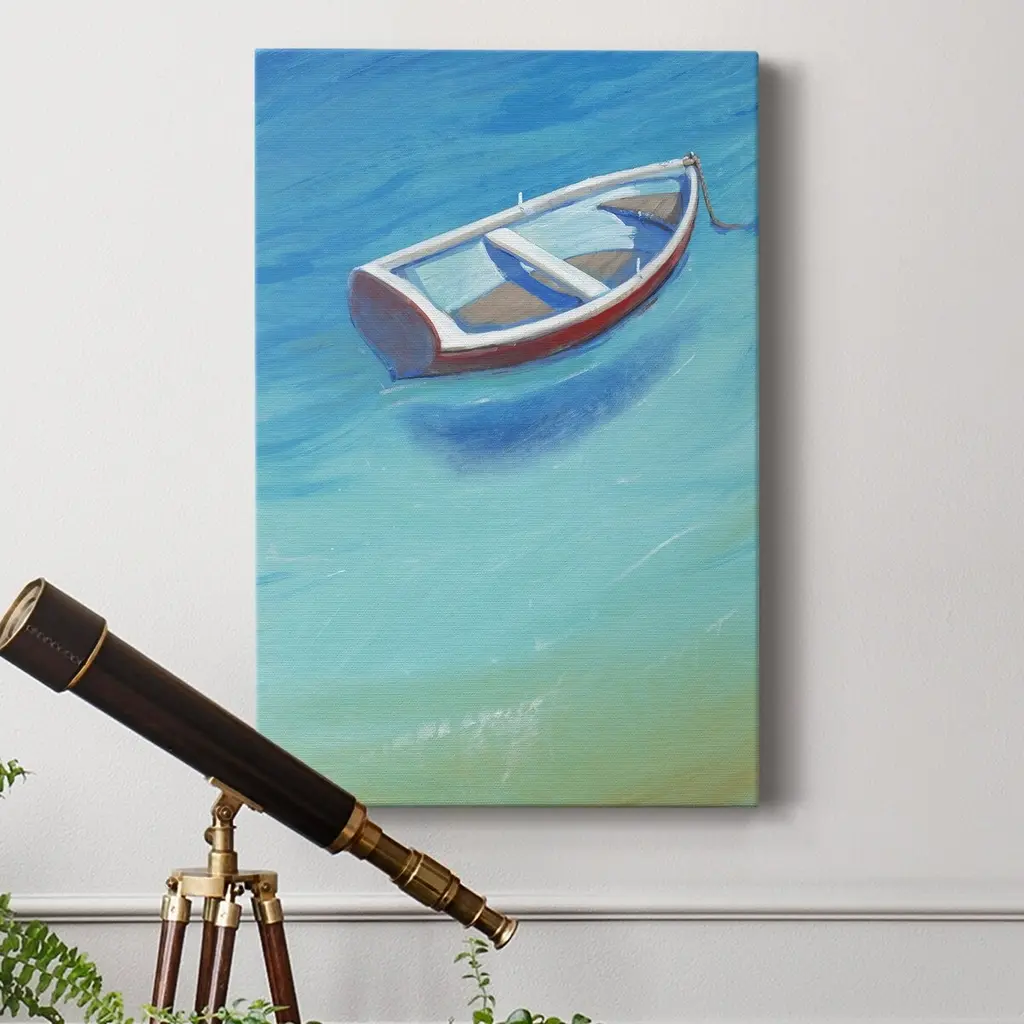 Anchored Dingy II Premium Gallery Wrapped Canvas - Ready to Hang A premium hand stretched gallery wrapped canvas print created to last. Featuring a beveled a solid wood stretcher bar, each piece comes ready to hand 6 SIZES AVAILABLE 8''X12'' - Overall Size 12''X18'' - Overall Size 18''X27'' - Overall Size 24''x36'' - Overall Size 32''x48'' - Overall Size 40''x60'' - Overall Size Each piece is made to order. Built to Last Each piece comes ready to hang Solid wood stretcher Fade and Water resistant Made domestically