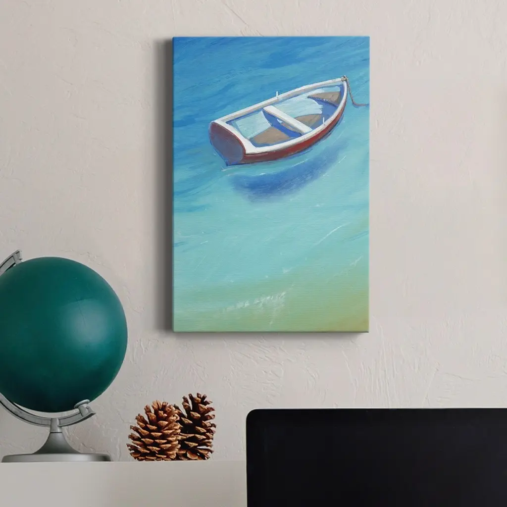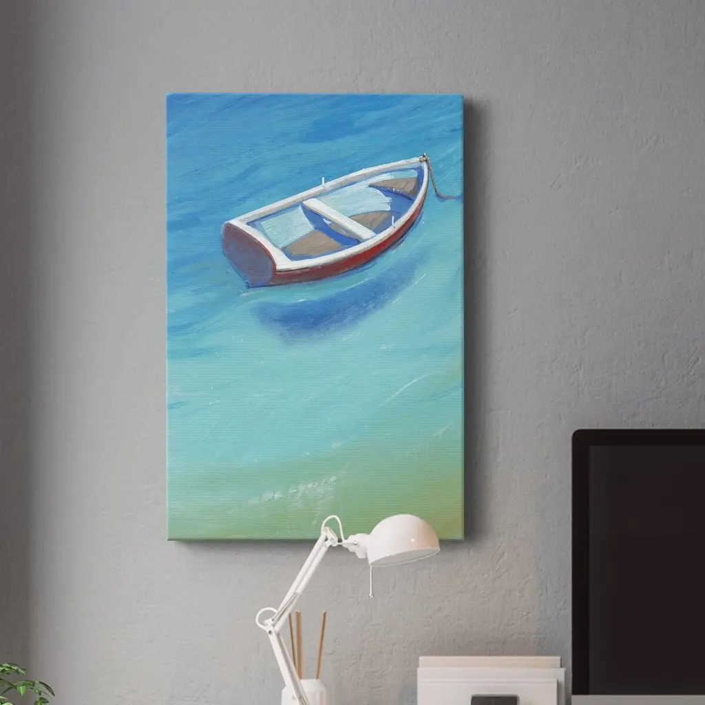 Anchored Dingy II Premium Gallery Wrapped Canvas - Ready to Hang A premium hand stretched gallery wrapped canvas print created to last. Featuring a beveled a solid wood stretcher bar, each piece comes ready to hand 6 SIZES AVAILABLE 8''X12'' - Overall Size 12''X18'' - Overall Size 18''X27'' - Overall Size 24''x36'' - Overall Size 32''x48'' - Overall Size 40''x60'' - Overall Size Each piece is made to order. Built to Last Each piece comes ready to hang Solid wood stretcher Fade and Water resistant Made domestically