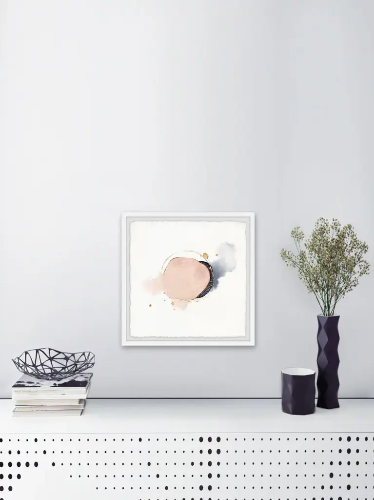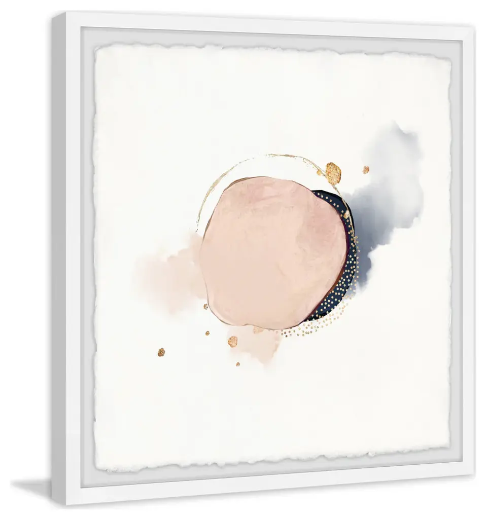 Inspired by art that makes you think, this watercolor painting print will grab your attention! Featuring various abstract shapes in pastel pink and black overlapping one another with speckles of gold throughout. Proudly printed in the USA, this piece is printed on high quality archive paper and professionally hand-framed. With wall-mounting hooks included, this artful accent is ready to hang up as soon as it reaches your front door.- Top quality Giclee print on high resolution Archive Paper- Hand cut deckled edges- High quality durable non-warping frame- Finished under shatter resistant plexiglass- Arrives ready to hang- Includes a certificate of authenticity- Printed in the USA