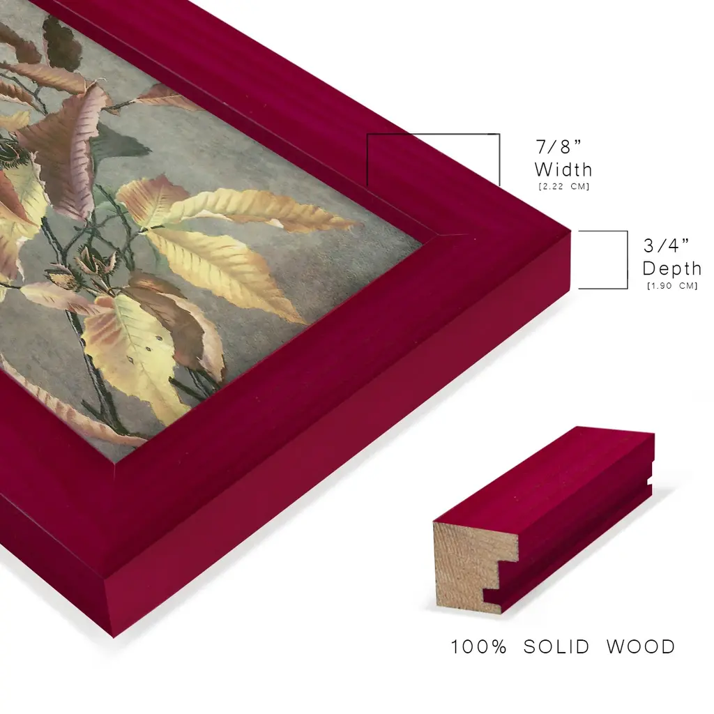 Ancient Autumn I -EZ SWITCH Framed Print w/glass-Cherry Red A delightful, framed print. Featuring a solid wood frame with real wood glass. This premium print is giclee quality. In addition, every frame features a removable back and table top stand. This allows you to change your art in the future or to just stand the art on a table for a new look. We are sure you'll enjoy our new series of EZ SWITCH Framed Art. Solid Wood Frame Real Glass Removable / Replaceable Art Built in Tabletop Stand Sizes range from 4x6 up to 12x15 - buy just one or pair them up as sets as you see fit.