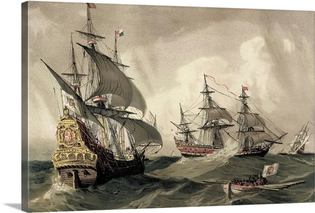 "Ancient Boat Drifting In Sea" Canvas Print, 40"x20"