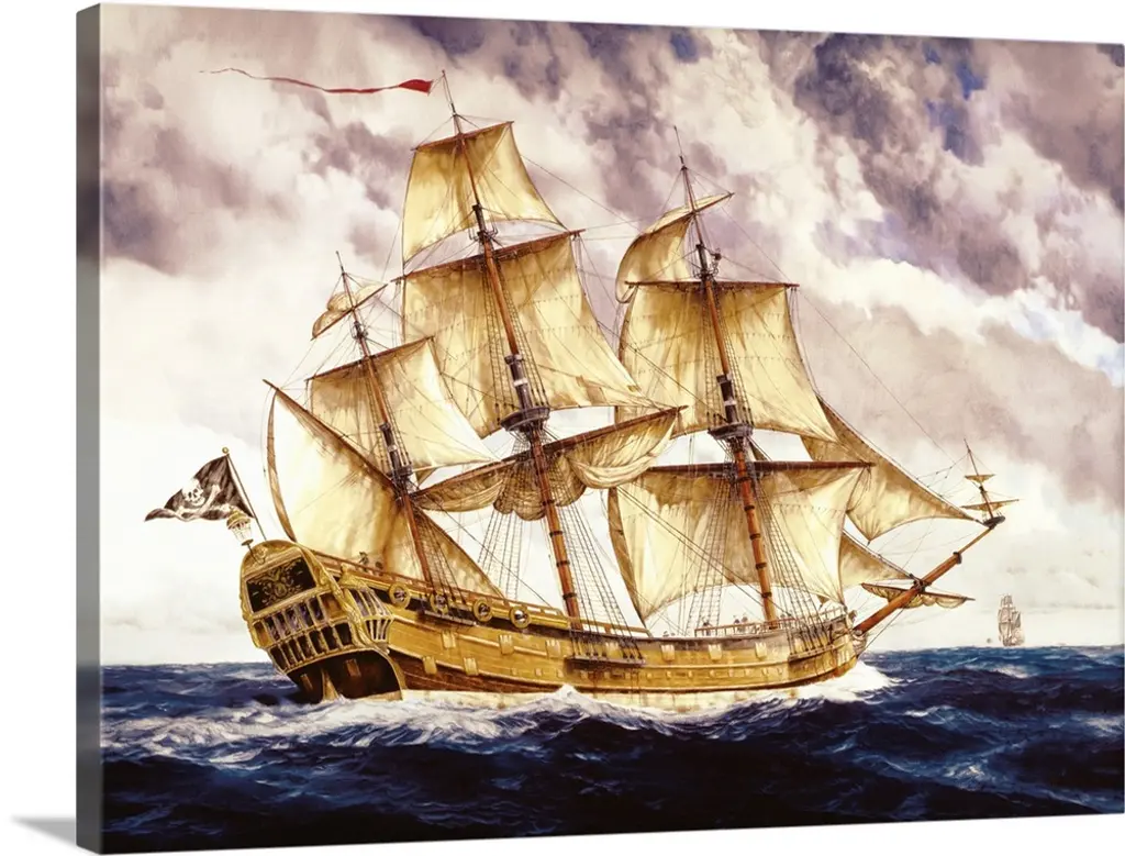 The Ancient Boat Drifting in Sea canvas art print is sure to make an impression on anyone who sees it. This artwork is gallery wrapped around a 1-inch solid wood frame and arrives carefully packaged and entirely ready to hang on the wall. Design Art only uses the highest resolution and pigments to ensure a crisp colorful print that is never faded or pixelated. This artwork is sure to be a conversation starter in any home or office.
