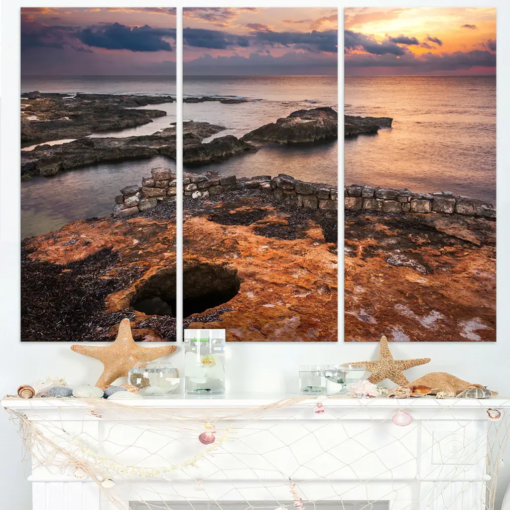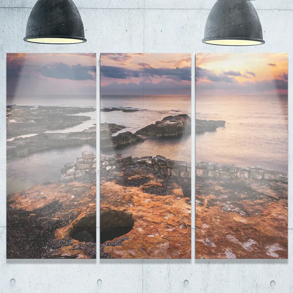 "Ancient Ruins On Beach Sunset" Metal Wall Art, 3 Panels, 36"x28"