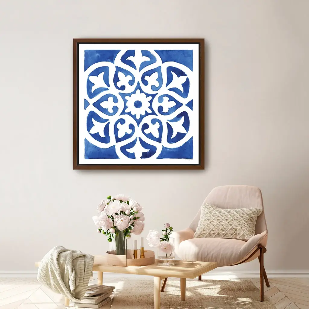 Enhance your decor with this captivating Andalusian art canvas print, featuring rich blue tones that evoke the charm and beauty of traditional Andalusian design. This artwork beautifully captures the essence of this vibrant culture, making it a stunning focal point for any room.Available in black frame, dark walnut frame and oak frames, or as a frameless canvas. Our Gallery Wrap Canvas Prints are proudly assembled with high quality materials in California, USA. Each piece is printed on a thick, archival grade canvas using Giclee technology. It is then hand-stretched by our experienced artisans over solid pine bars, which will not warp over time. The final product is a piece personally crafted for you to confidently display on your wall. Care and Assembly: Ensure that the location of your piece has little to no exposure to heat, sunlight, and moisture. Wipe clean, only if needed. Each piece includes a sawtooth hanger to hang on your wall horizontally.