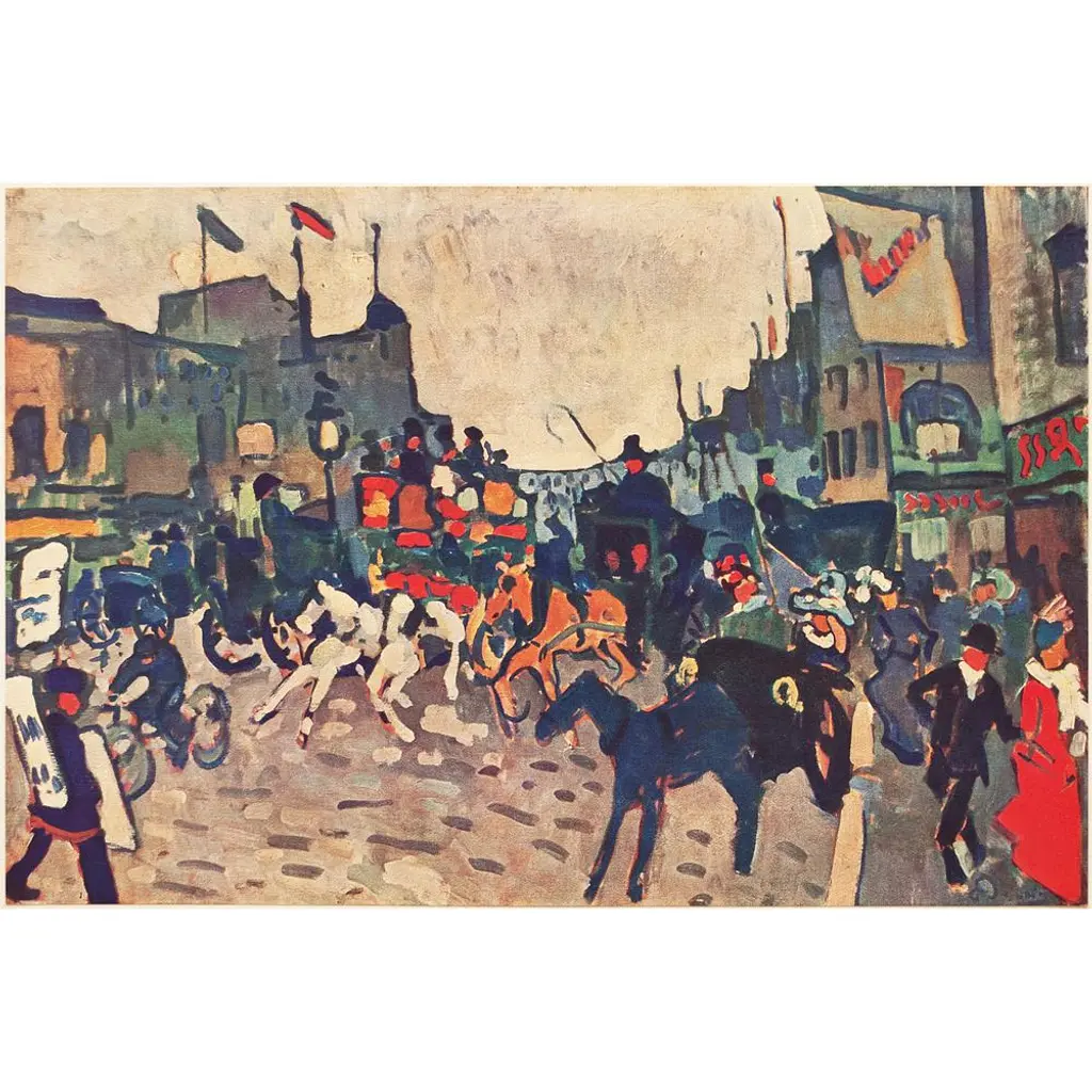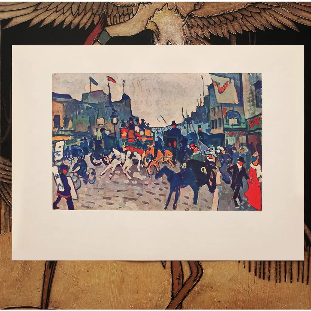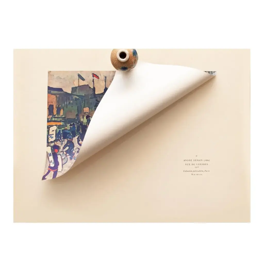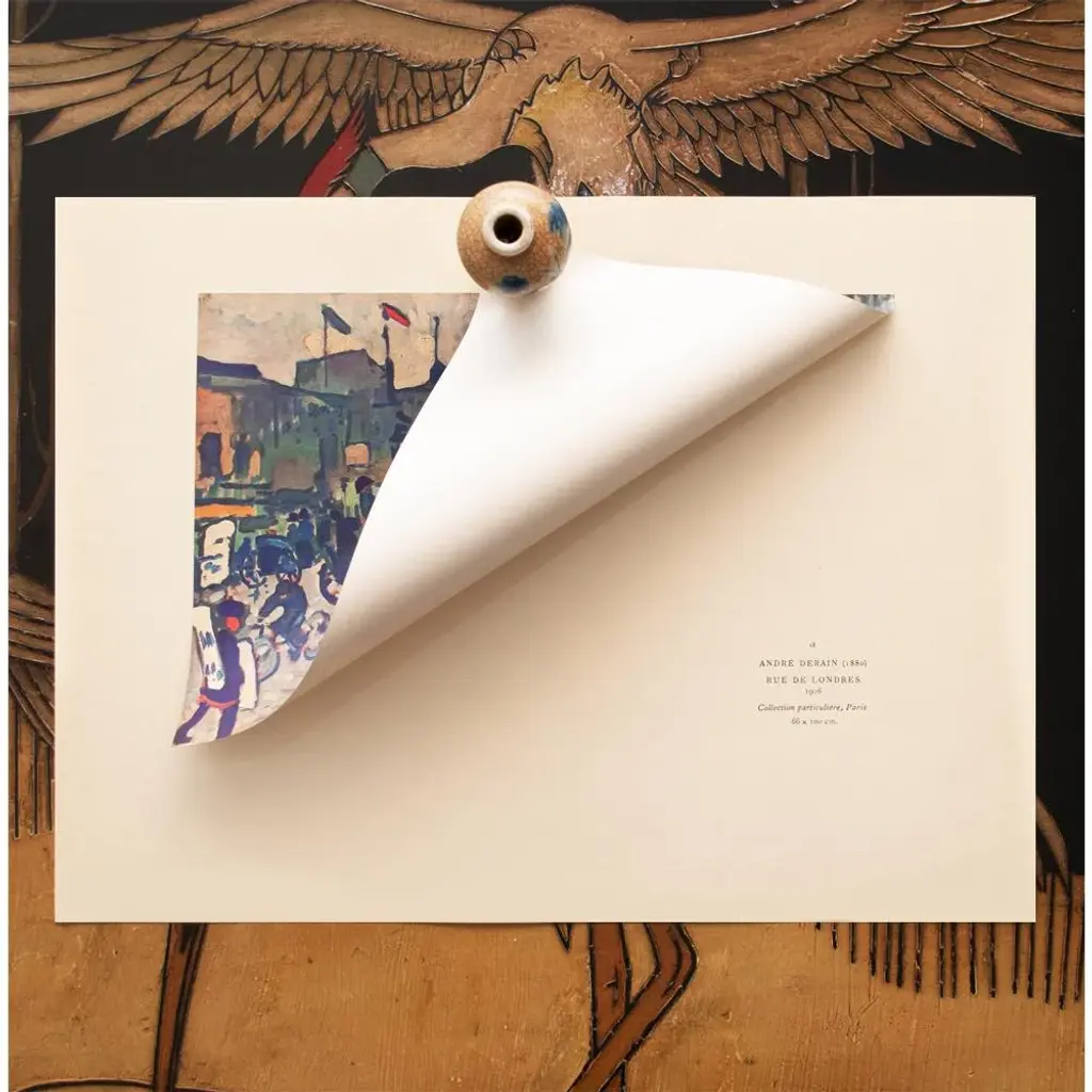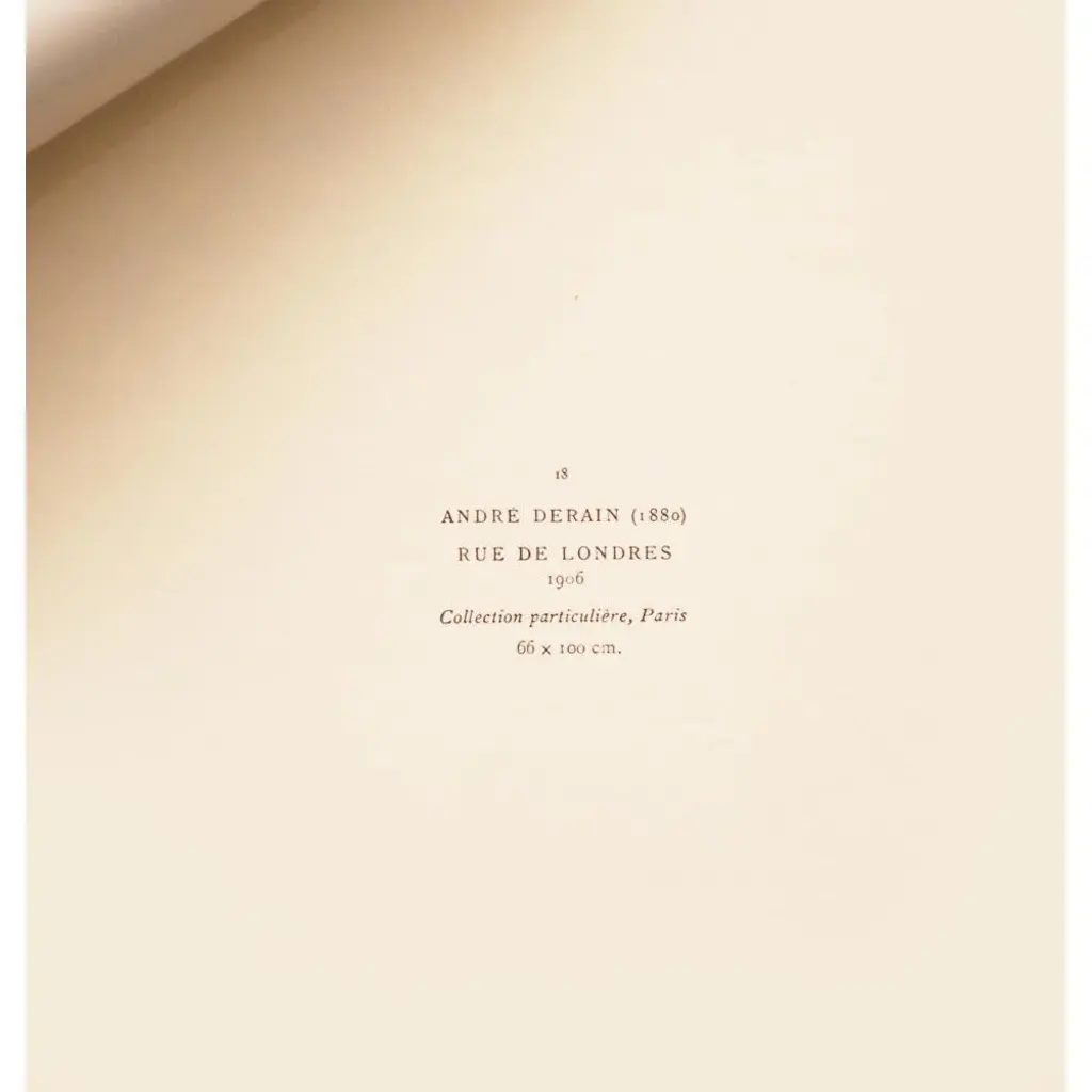 A rare excellent vintage First Edition period offset lithograph, print of painting "Rue De Londres" (London Street) by André Derain (1880 – 1954). Comes from a rare First Limited Edition art folio published in Paris, France in 1947. Signed in the print (printed) at the lower right corner: "A Derain". Hand tipped-in on a board of heavy paper. Information regarding the original artwork will be found by lifting the piece. Excellent condition - minor edge wear on the board, never framed. Overall 11"W x 15"H Image 10.5"W x 7"H