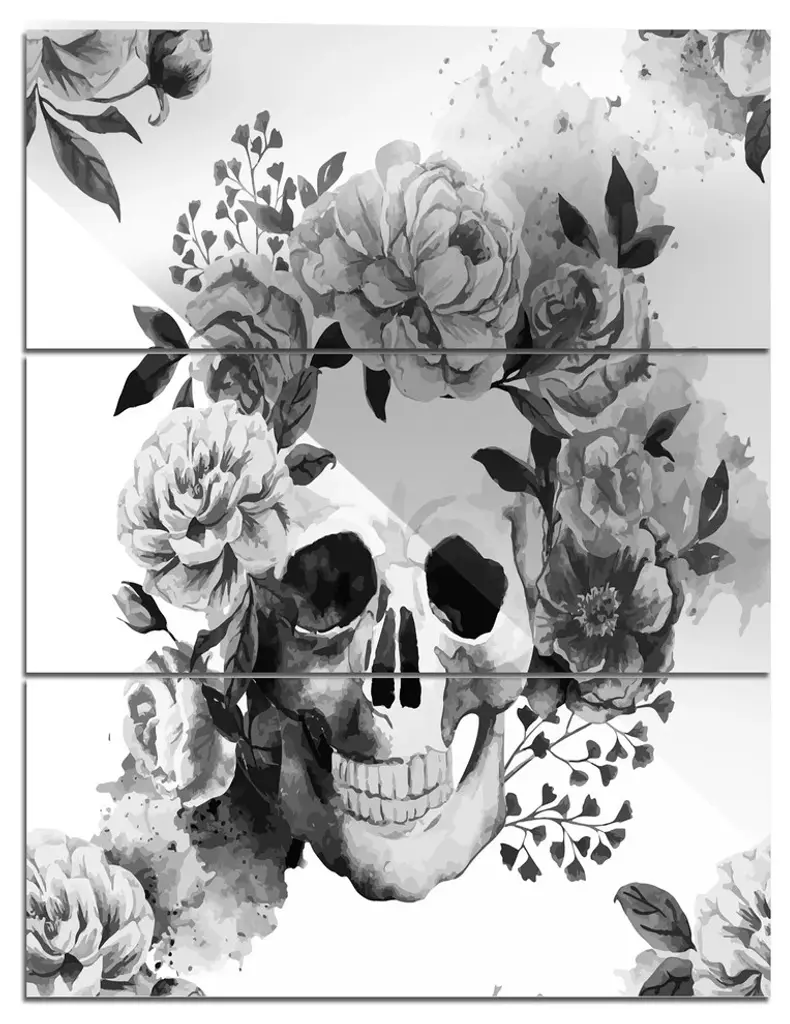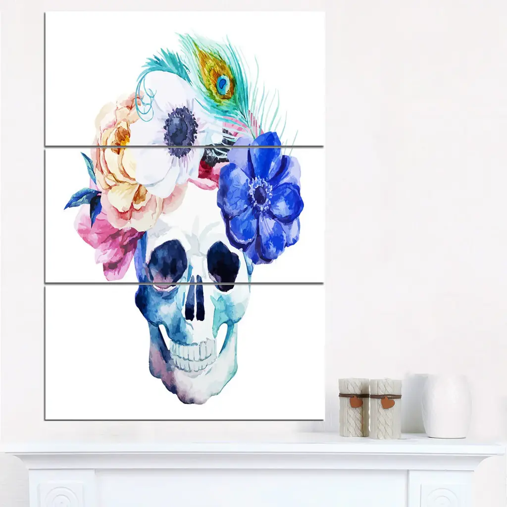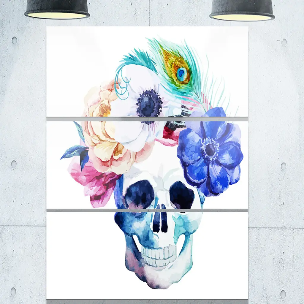 "Anemones And Skull" Digital Glossy Metal Wall Art, 3 Panels, 28"x36"