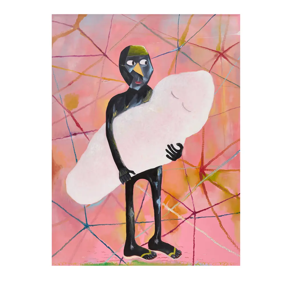 A mix of despair and ecstasy exudes from the face of the angel subject of this singular mosaic piece. Depicted against a starry nocturnal sky and with a turquoise liquid on the verge of dropping onto his head, the angel results further fragmented since his figure is reflected in a broken mirror, and mirrors also stand for his hands for a surrealist effect of extraordinary contemporary sensibility. An authenticity certificate is included with purchase.