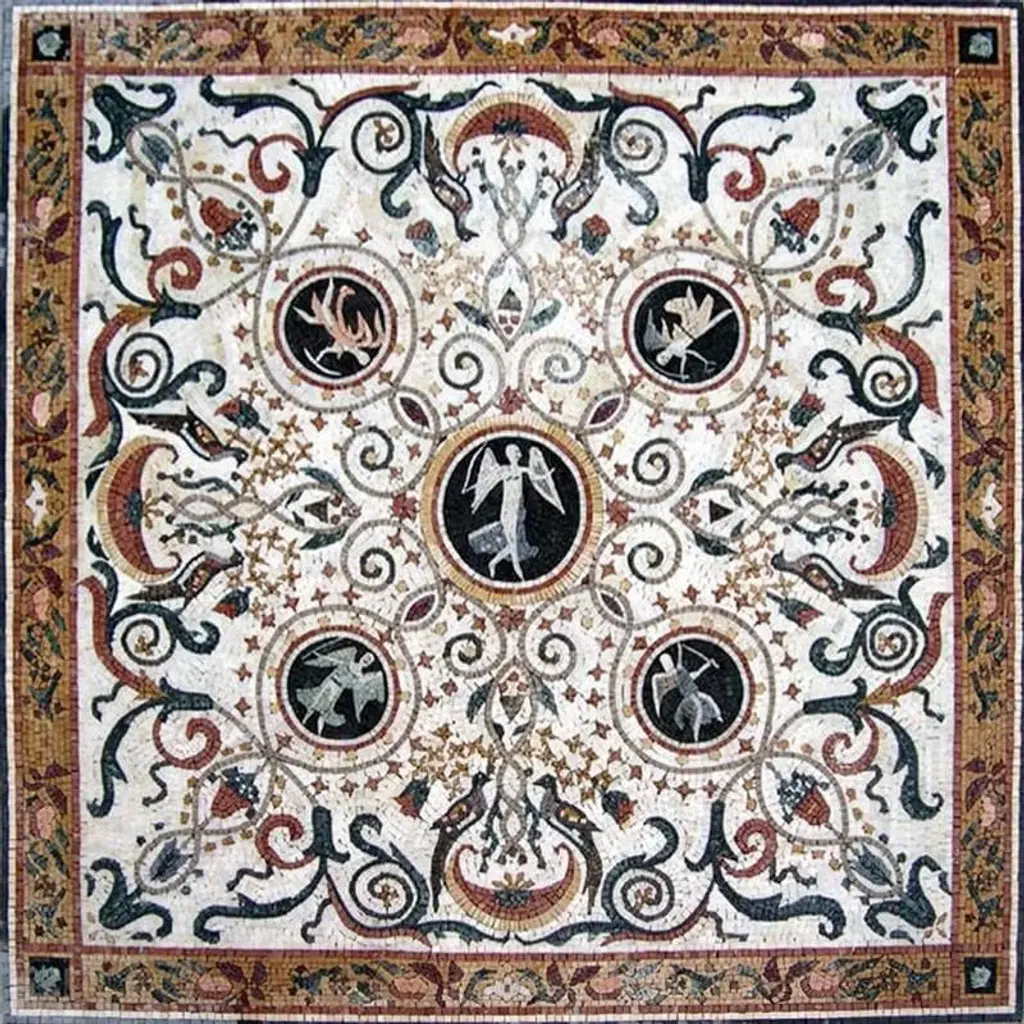 Angelos - Greek Mosaic Art Square - 90cm X 90cm (36" X 36") / With Frame