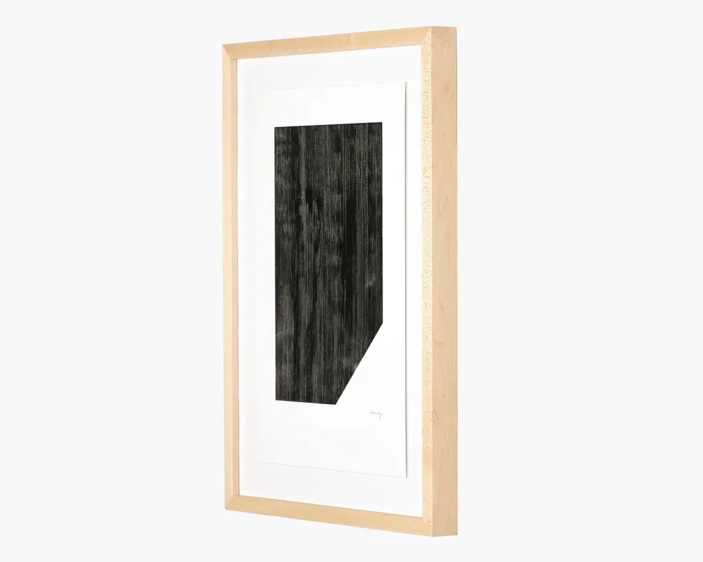 Los Angeles artist and interior designer Victoria Holly looks to classic colors and simple shapes for her minimalist, plaster-based paintings. Using a progressive printing technique which layers ink to create tangible texture, this piece is printed on textured paper with a spot gloss treatment for added dimension. Framed within natural American maple for a gallery-quality look. Handmade in Austin, Texas. Size shown is print size, add frame thickness to print size for total frame size Weight: 15 lbs Matte Canvas Acrylic Glass