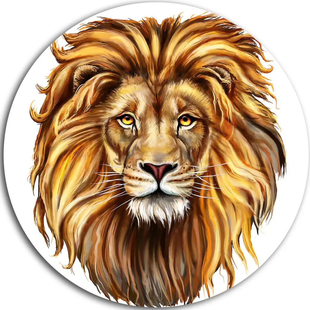Bring Contemporary Abstraction to your home with this large Circle Metal wall art. This Angry King of Forest Metal Artwork makes it the focal point of any room or office. - White Gloss Coating ensures colors are extra vibrant with light reflection.- Aluminum grade Sheet Metal with 1 inch mounting frame on the back giving the illusion that the artwork is floating on the wall..- Mounting Brackets are included along with instructions.- High Quality Digital images are created directly into a glossy aluminum panel producing a stunning and captivating print into the glossy finish of the metal.- Water, Fire and Scratch resistant HD Aluminum panels.- Looks better than any photo paper and guaranteed to last at least 20 years- Easy to clean with a microfiber cloth. Colors are far superior to regular Canvas Art. - Easy to Hang