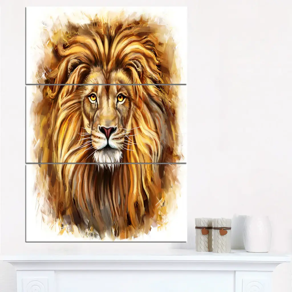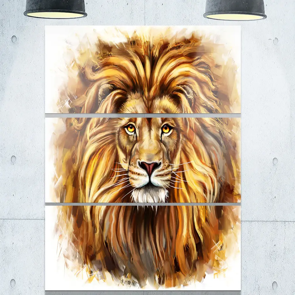 "Angry King Of Forest" Glossy Metal Wall Art, 3 Panels, 28"x36"