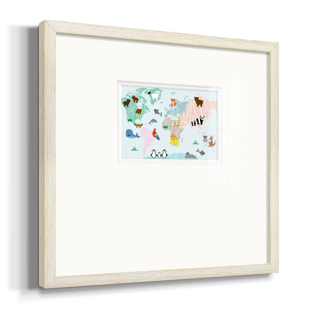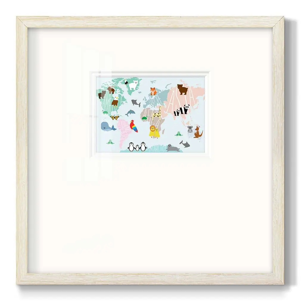 Animal MapPremium Framed Print A framed cold pressed paper print featuring superior double matting and quality frame. 2 SIZES AVAILABLE 16''X16''' - Overall Size 20''X20''' - Overall Size Each piece is made to order. Each piece comes with hanging hardware. Made in the USA Ready to Hang Giclee Paper Print Plexiglass Beveled Matt Board Double Matte Board