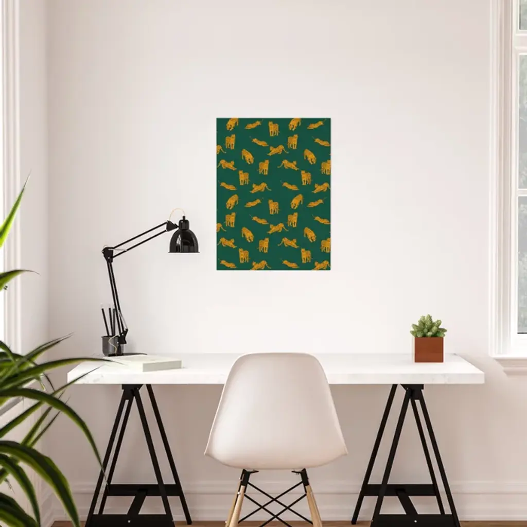 Animal Print - Tigers On Dark Olive Green Retro Texture Poster