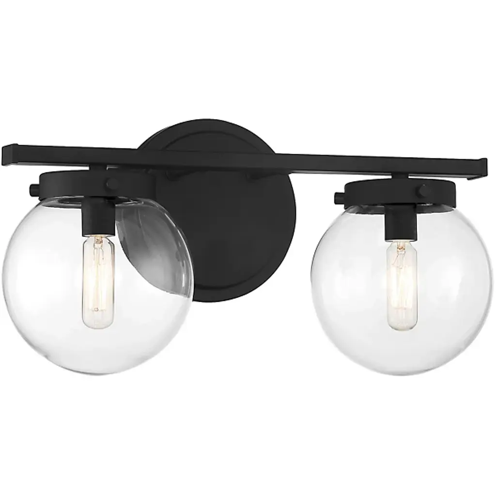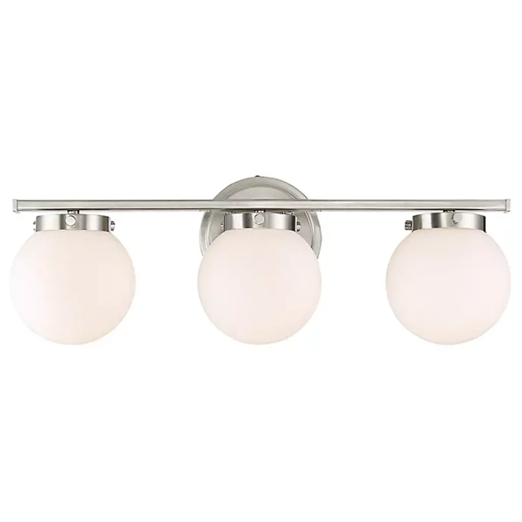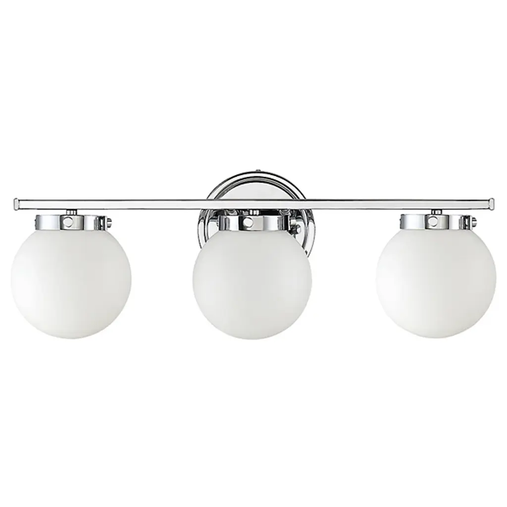 Vintage-inspired illumination. The Anita Vanity Light by Alder & Ore is a glamorous display of transitional form and function. Each orb-shaped shade is crafted from glass (optional glass types available), while a circular wall plate and steel frame come in your choice of finishes, each of which offer their own distinctive upscale shimmer. For an obvious upgrade to your bathroom's beauty, comfort and brightness, this fixture sets the bar high.