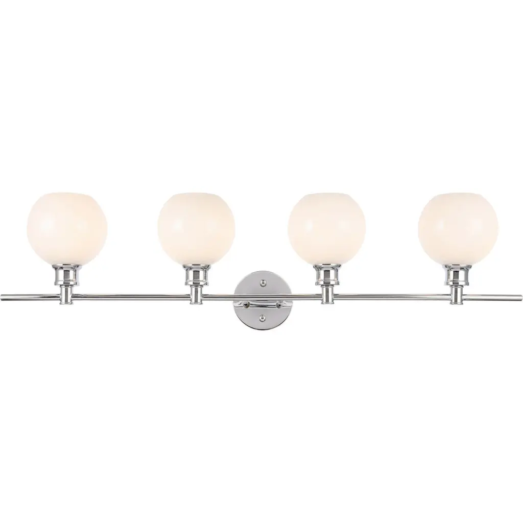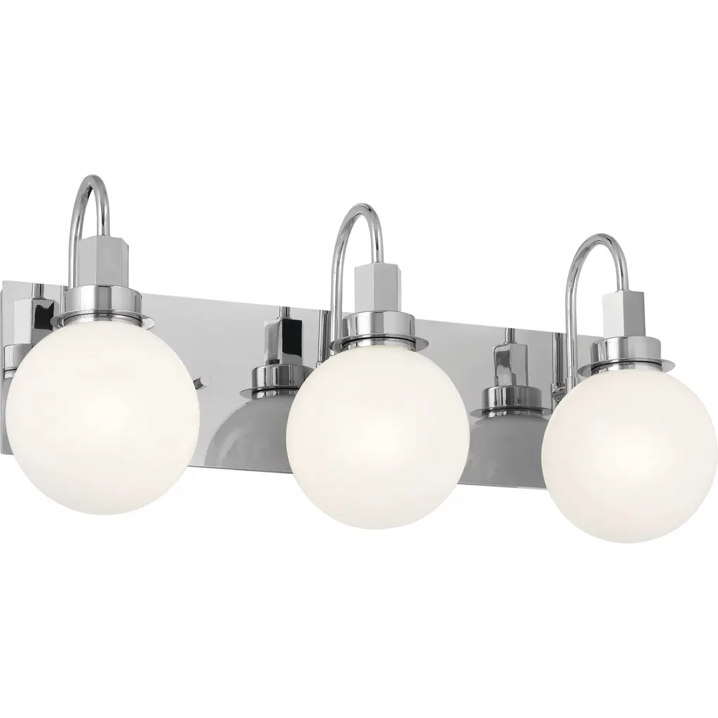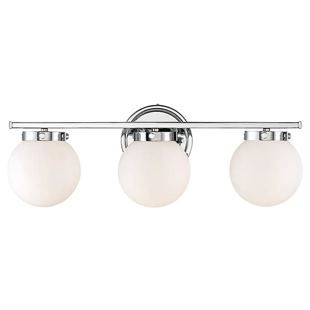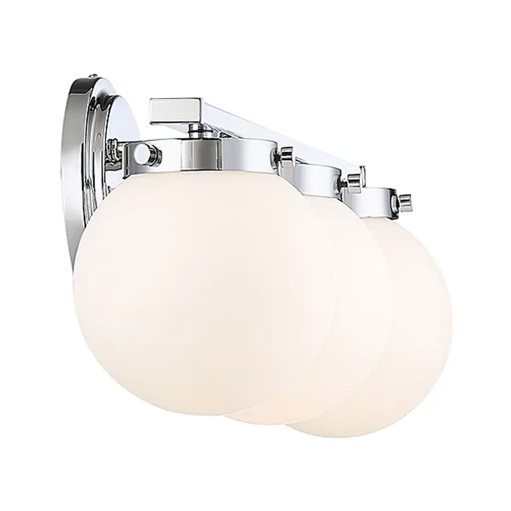 Vintage-inspired illumination. The Anita Vanity Light by Alder & Ore is a glamorous display of transitional form and function. Each orb-shaped shade is crafted from glass (optional glass types available), while a circular wall plate and steel frame come in your choice of finishes, each of which offer their own distinctive upscale shimmer. For an obvious upgrade to your bathroom's beauty, comfort and brightness, this fixture sets the bar high.