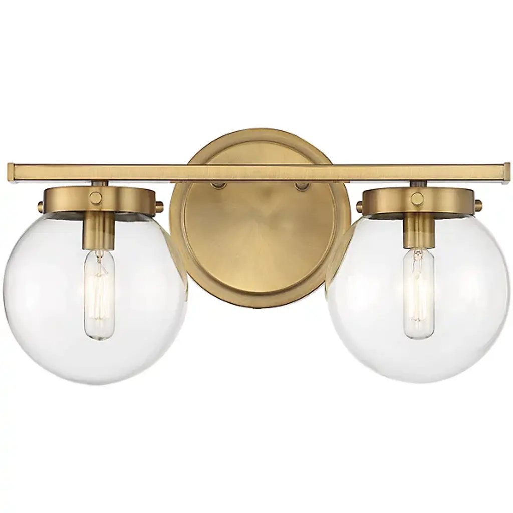 Vintage-inspired illumination. The Anita Vanity Light by Alder & Ore is a glamorous display of transitional form and function. Each orb-shaped shade is crafted from glass (optional glass types available), while a circular wall plate and steel frame come in your choice of finishes, each of which offer their own distinctive upscale shimmer. For an obvious upgrade to your bathroom's beauty, comfort and brightness, this fixture sets the bar high.
