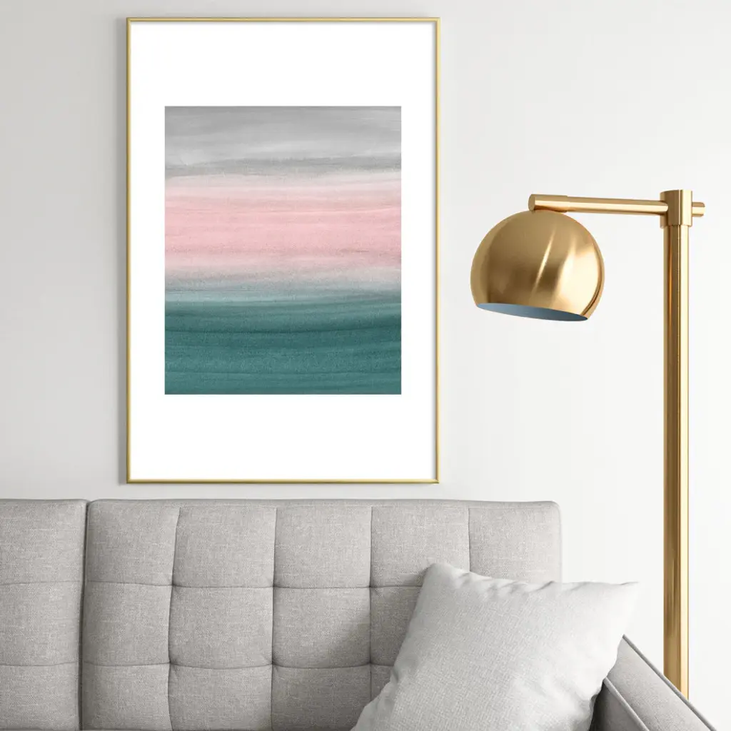 Anita's & Bella's Artwork Teal Blush Gray Watercolor Metal Framed Art Print