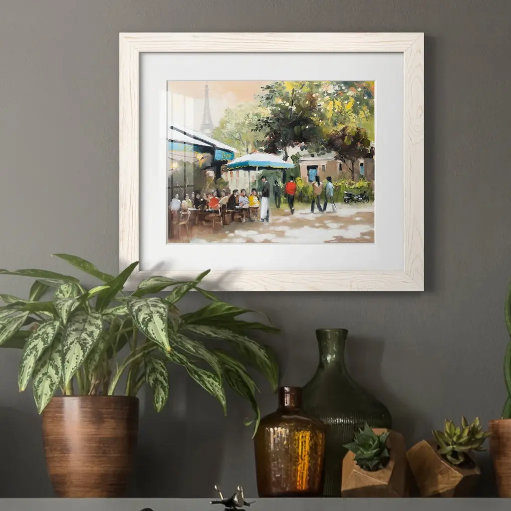 Art print by Ann Marie Coolick featuring a painterly scene of Paris in spring. Printed on archival paper made from cotton pressed in Italian mills, this high-quality art print is available in sizes and frames just right for your space. First select your frame (or go frameless), then select your size. **About the Frames** \- The exact width of each frame may vary slightly \- All frames are manufactured in the US \- Matte frames are durable poly \- Wood frames are recycled wood \- All are fitted with protective plexiglass \- Finished with wood moldings, archival backer and protective bumpers **Size** \- Available in multiple sizes \- Use the Size Guides to find the size that fits your space **Content + Care** \- Wipe clean \- Made in the USA