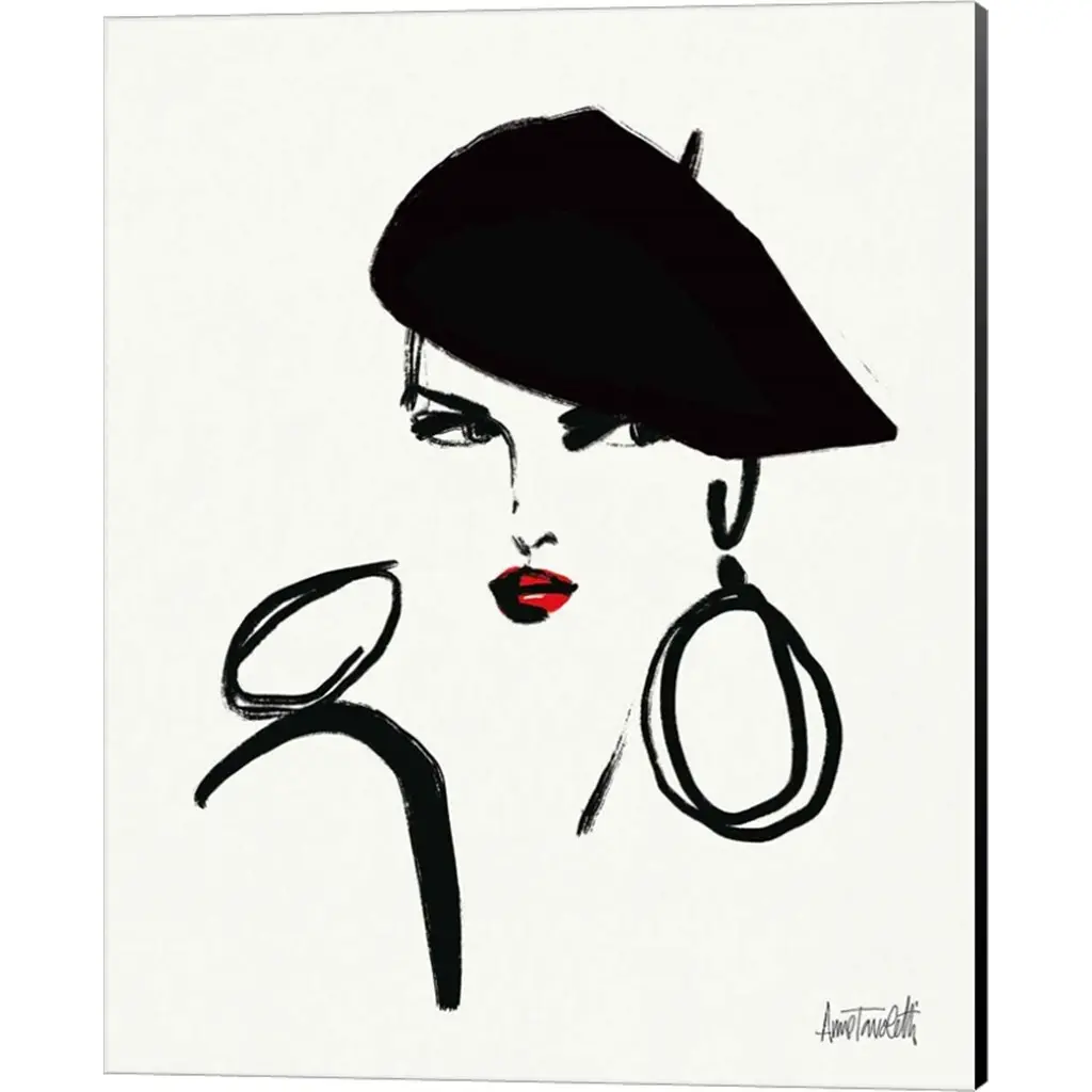 Beret and Scarf I by Anne Tavoletti is a high quality piece of canvas artwork. The finished size of this piece is 16" X 20", and it has a depth 0.75" with black painted sides. There is a UV protective coating over the entire image, and it is ready to hang on your wall with a standard drywall screw (not included). 100% Satisfaction Guaranteed.