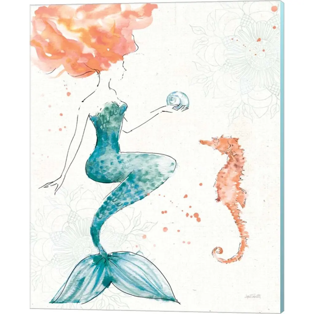 Sea Sirens I No Words by Anne Tavoletti is a high quality piece of canvas artwork. The finished size of this piece is 16" X 20", and it has a depth 0.75" with aqua painted sides. There is a UV protective coating over the entire image, and it is ready to hang on your wall with a standard drywall screw (not included). 100% Satisfaction Guaranteed.