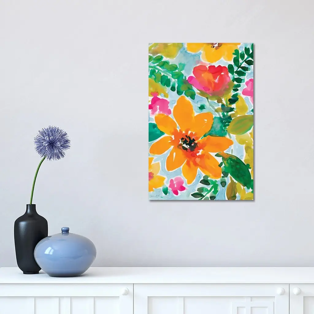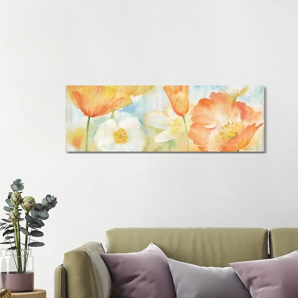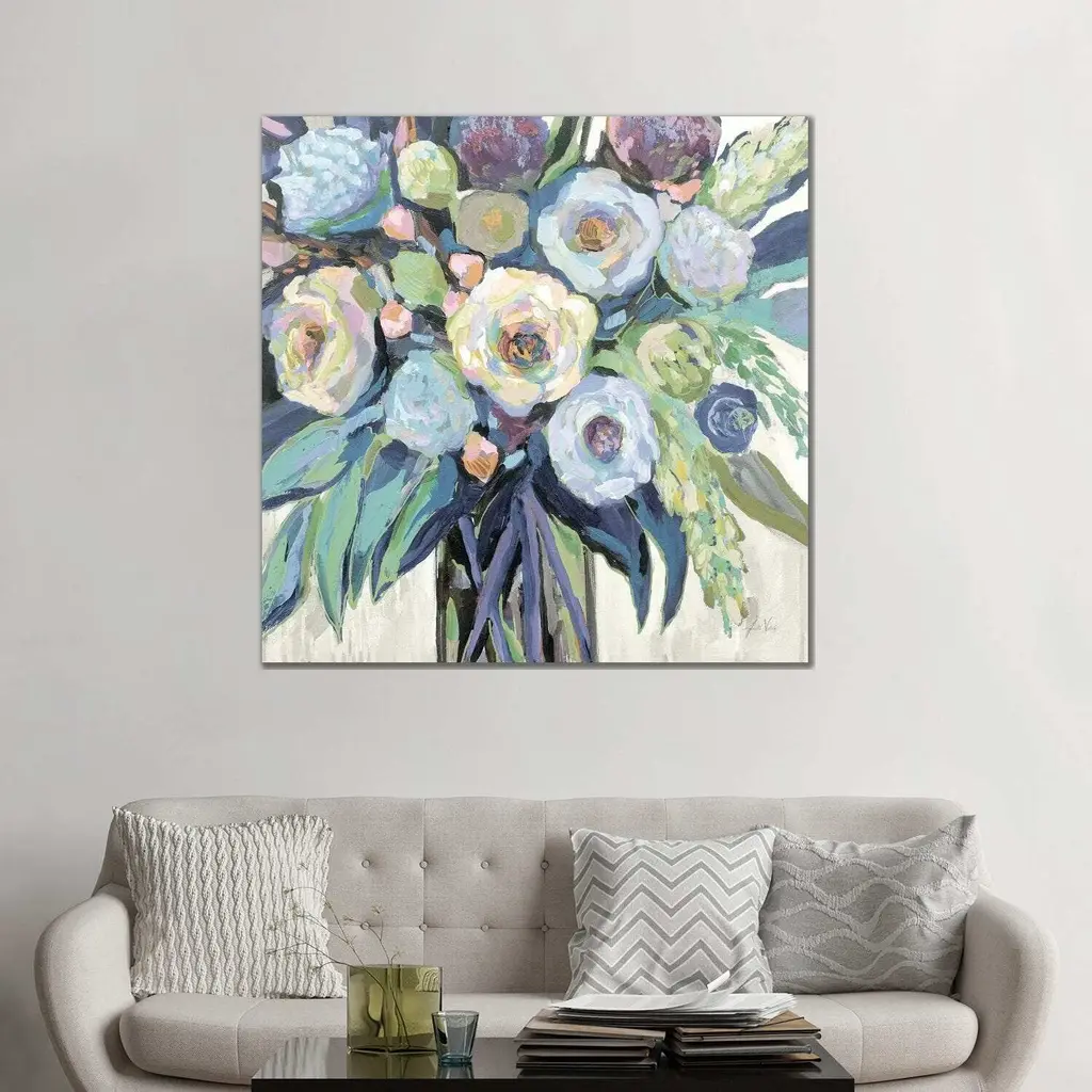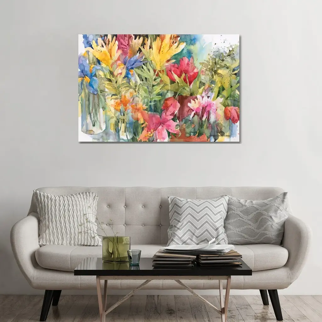 Artist: Annelein BeukenkampSubject: FloralStyle: Modern &ContemporaryProduct Type: Gallery-Wrapped Canvas ArtMade in USAThis ready to hang, gallery-wrapped art piece features pink and white flowers in the center of the frame.My watercolors and approach to painting are constantly evolving. I truly enjoy the beautiful way the pigments mingle and interact on the crisp white paper. Watercolor is my joy and passion and still has so much to teach me. I am a signature member of the Vermont Watercolor Society and have won several awards at various venues across the state. I participate in many yearly group and juried shows, some of which have included the Stratton Arts Festival, Envisioned in a Pastoral setting, Shelburne Farms, Art on the Mountain, Haystack, Reflections on Basin Harbor and Art in the Round Barn, Waitsfield. My favorite subject matter continues to be those ever colorful and varied flowers. They take well to the medium and allow me to stretch my palette to its fullest capacity. I strive to capture a blooms��_ ��_essence��_, not its exact reproduction. I think the reason I enjoy painting all those blossoms, stems from my childhood in the Netherlands, driving by field after field of explosive color on my way to my grandmother��_s house. My paintings can be seen at various galleries across the state and recently I have had several of my images reproduced as limited edition Giclee prints. My watercolors are in private and corporate collections across the globe.Giclee (jee-clay) is an advanced printmaking process for creating high quality fine art reproductions. The attainable excellence that Giclee printmaking affords makes the reproduction virtually indistinguishable from the original piece. The result is wide acceptance of Giclee by galleries, museums, and private collectors. Gallery wrap is a method of stretching an artist's canvas so that the canvas wraps around the sides and is secured a hidden, wooden frame. This method of stretching and preparing a canvas allows for a frameless presentation of the finished painting.