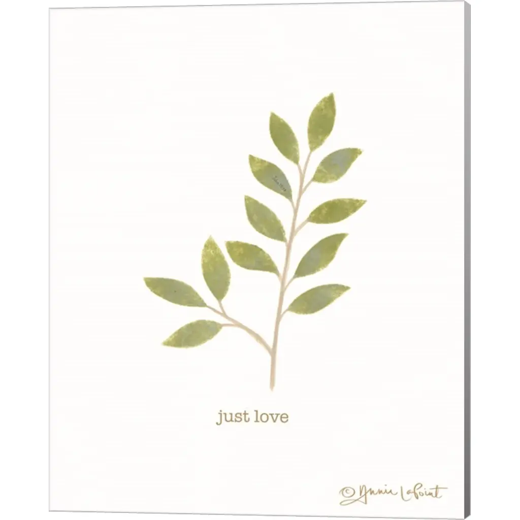 Just Love by Annie Lapoint is a high quality piece of canvas artwork. The finished size of this piece is 16" X 20", and it has a depth 0.75". There is a UV protective coating over the entire image, and it is ready to hang on your wall with a standard drywall screw (not included). 100% Satisfaction Guaranteed.
