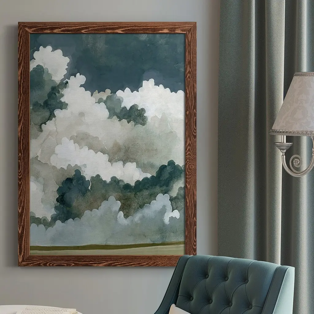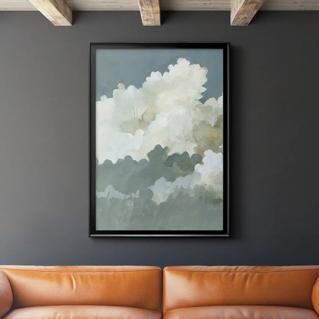 Put your design savvy on display with this stunning canvas art. Hand painted with plenty of texture, this wall arts dreamy cloud-and-light-filled blue sky will bring interest and style to any transitional home or office. A stunning cream-painted frame puts a finishing touch on this eye-catching piece thats ready to complete the look of any space.